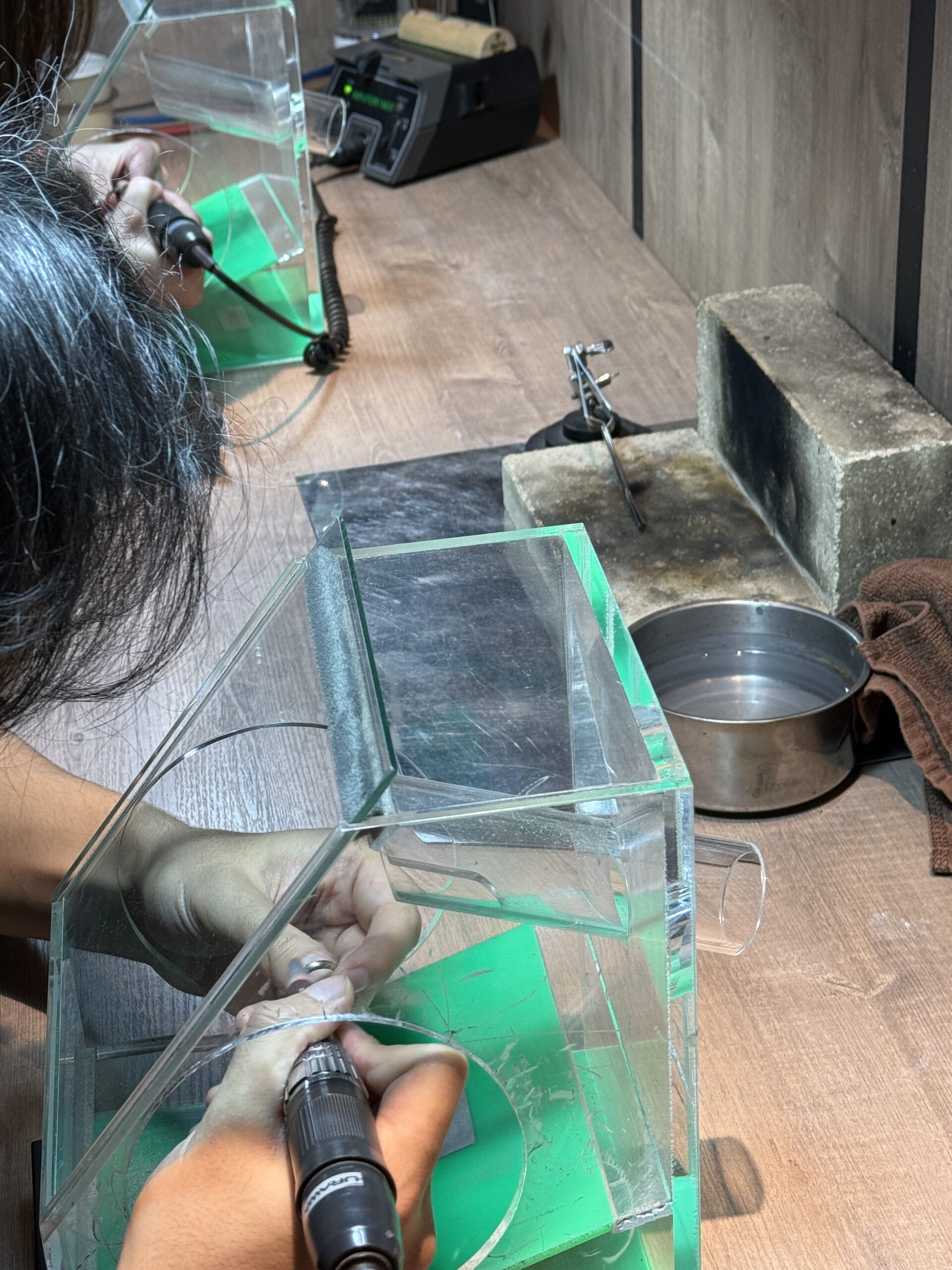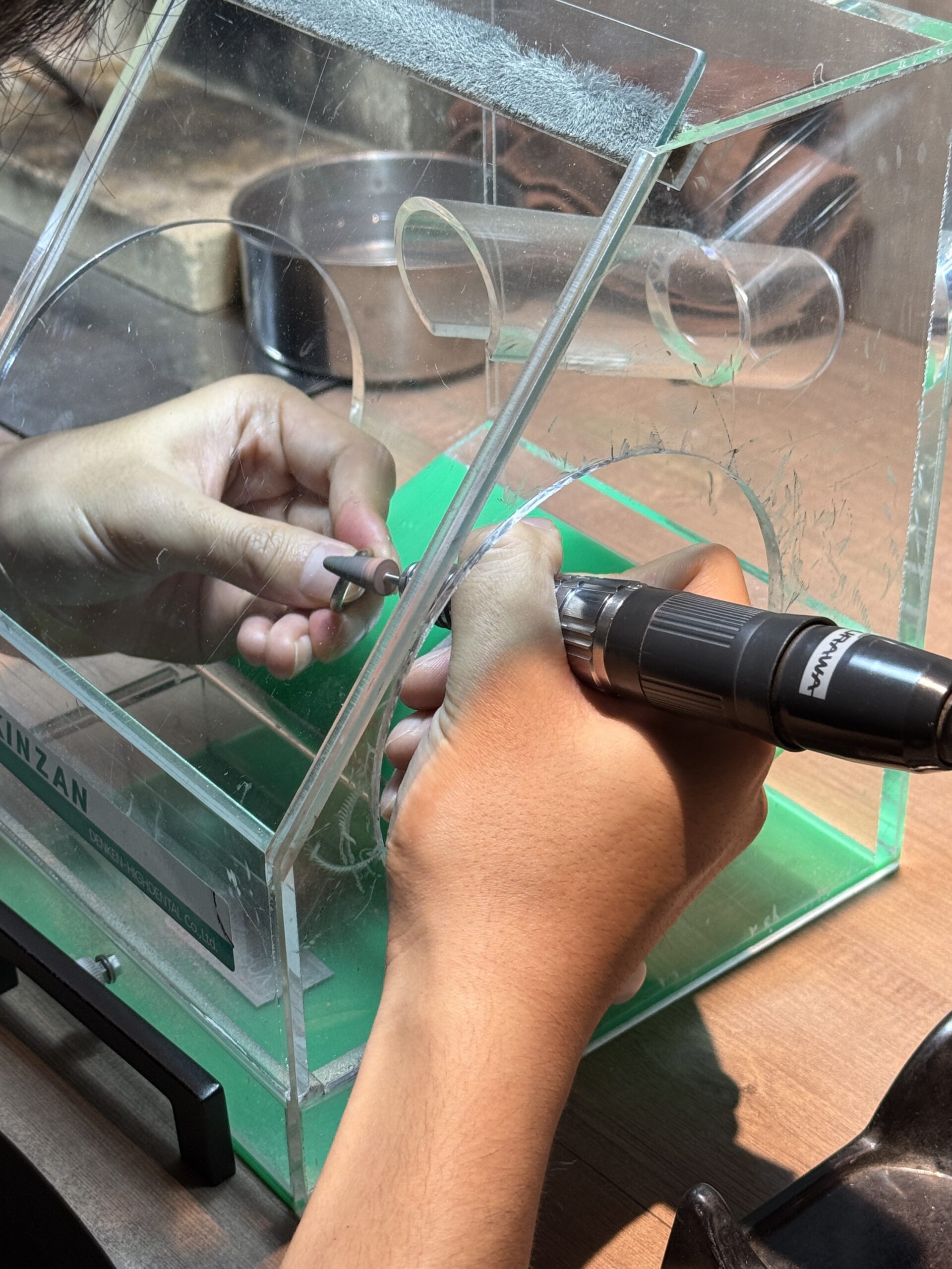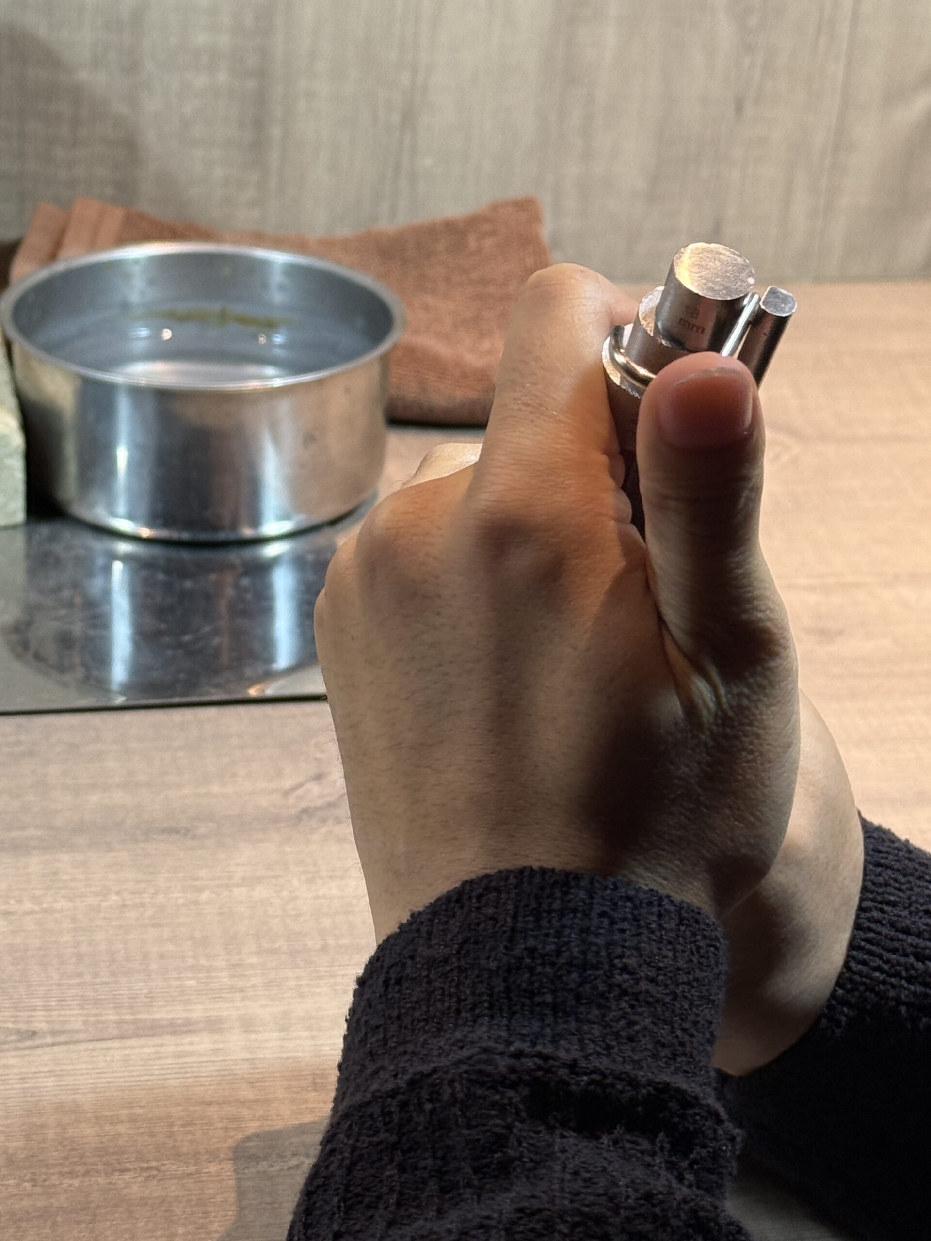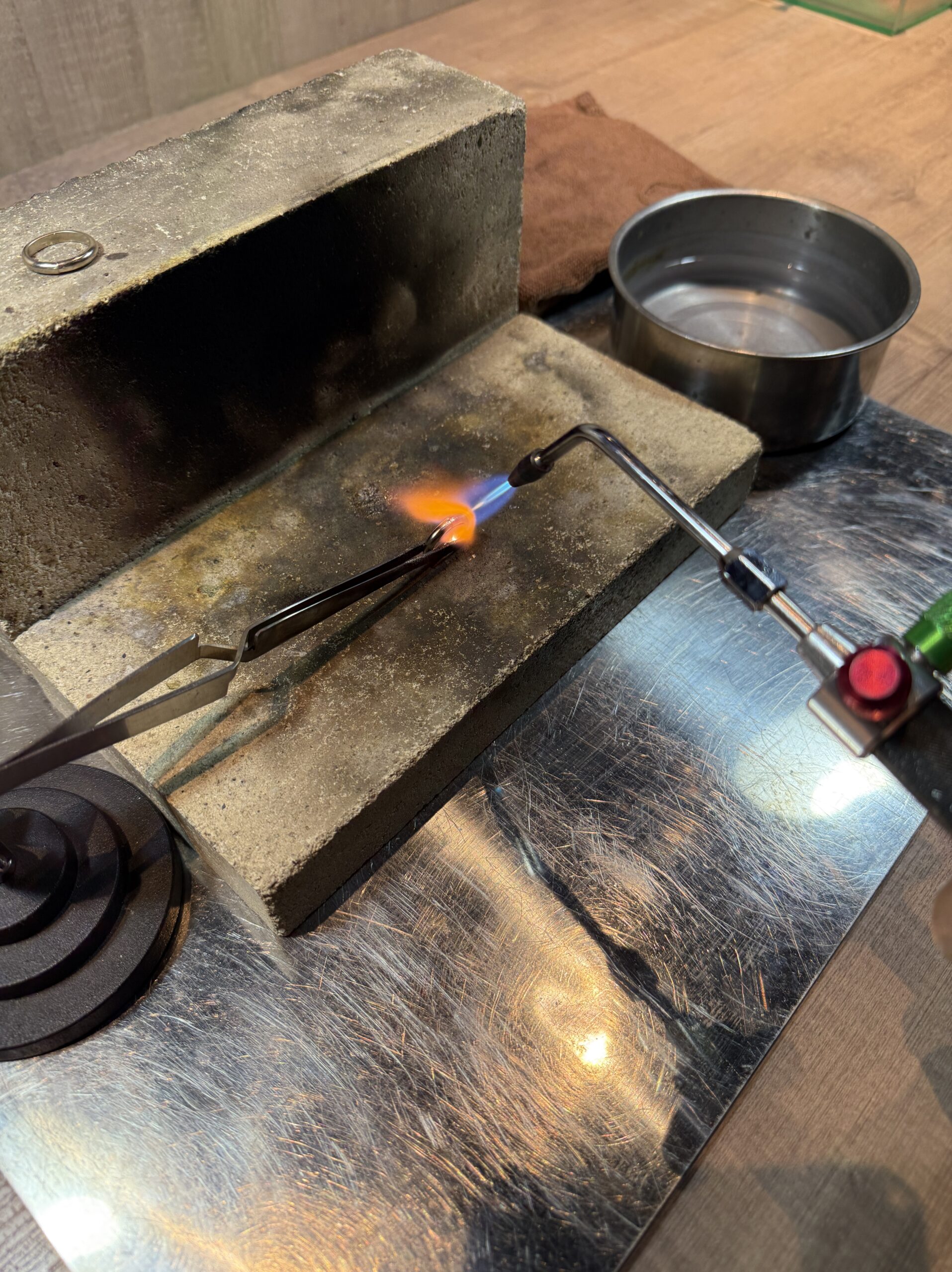 おふたりには、棒状の素材を丸める工程から溶接、研磨に至るまで終始丁寧にご制作されていました。