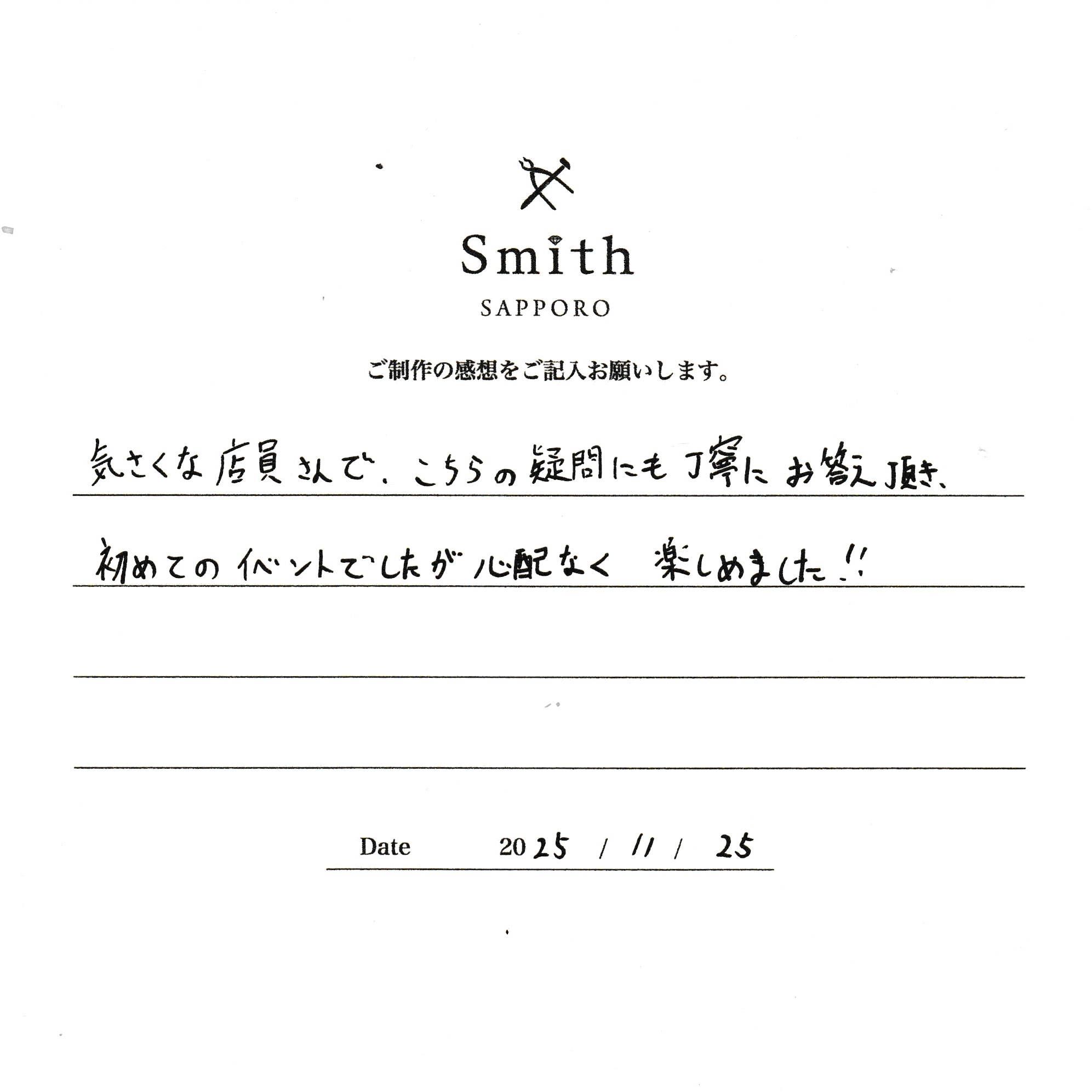本日は数あるお店の中から大切なペアリングご制作に当店をお選びいただきありがとうございます。