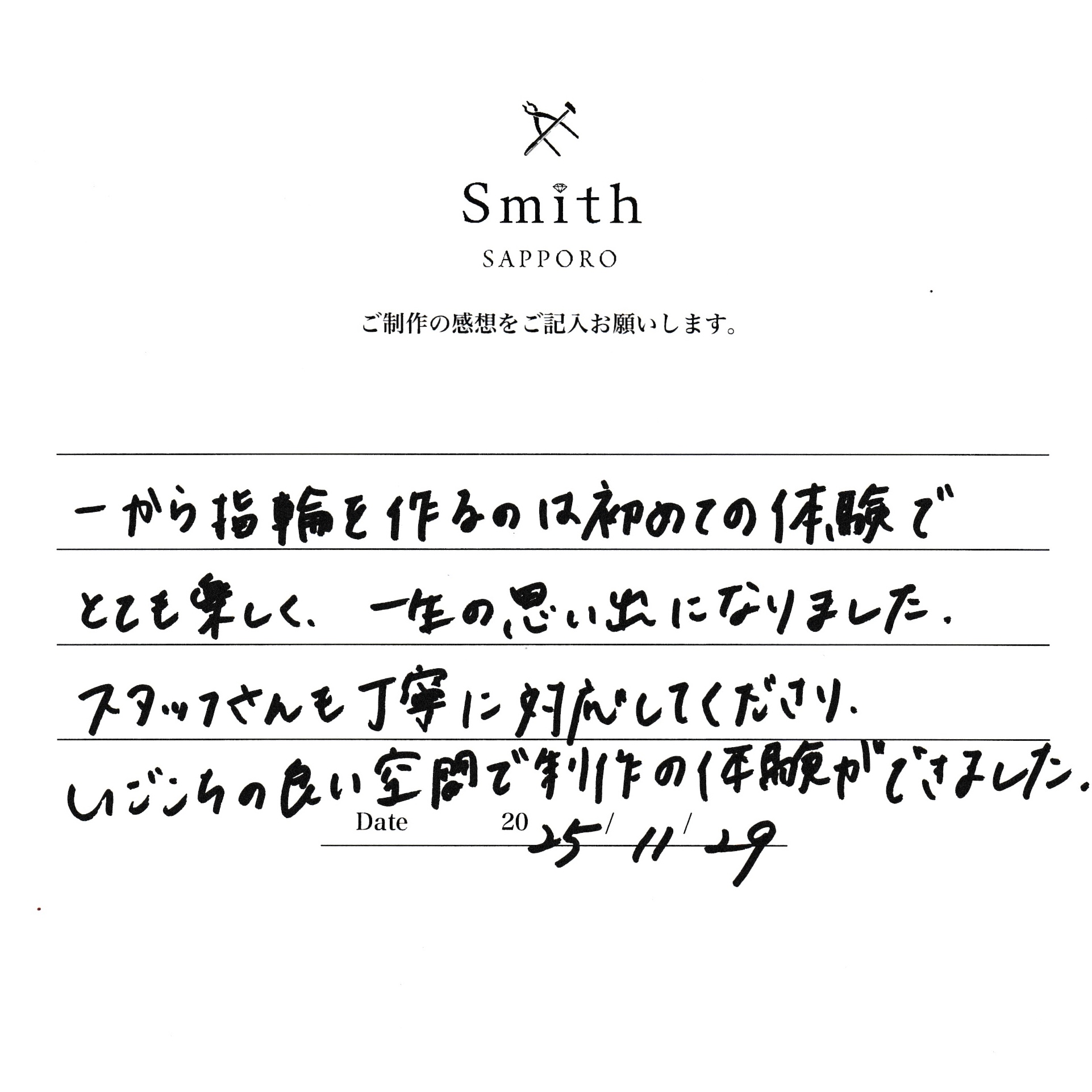 このたびは結婚指輪の制作で工房Smith札幌にご来店いただき、誠にありがとうございました。