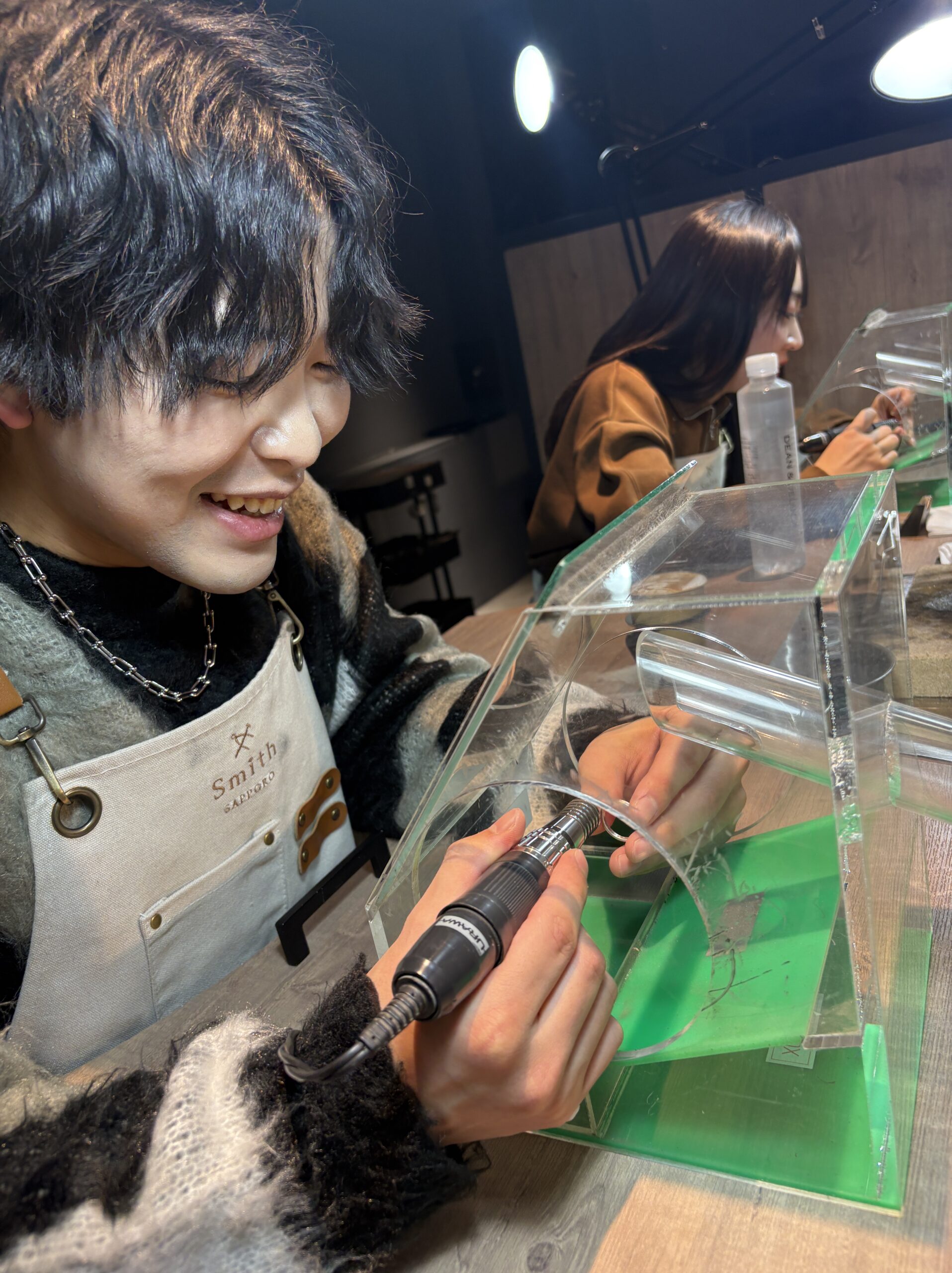 制作が始まると職人気質が感じられ、細かな部分まで丁寧に向き合う姿が印象的でした。終始仲良く声をかけ合いながら制作され、心待ちにしていた叩く工程では、笑顔いっぱいでとても楽しそうでした。