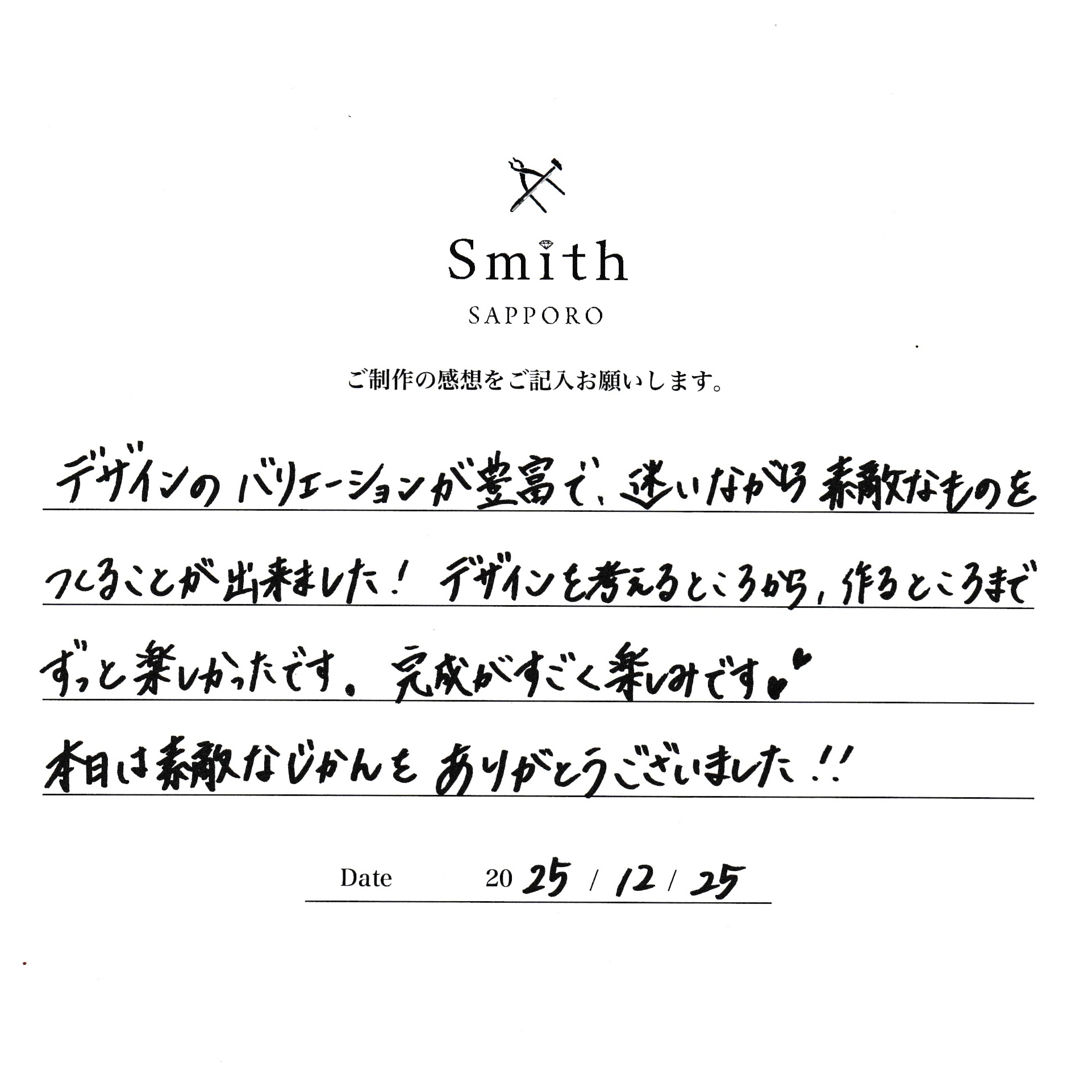 この度は、手作りネックレスのご制作でご来店いただき、誠にありがとうございました。