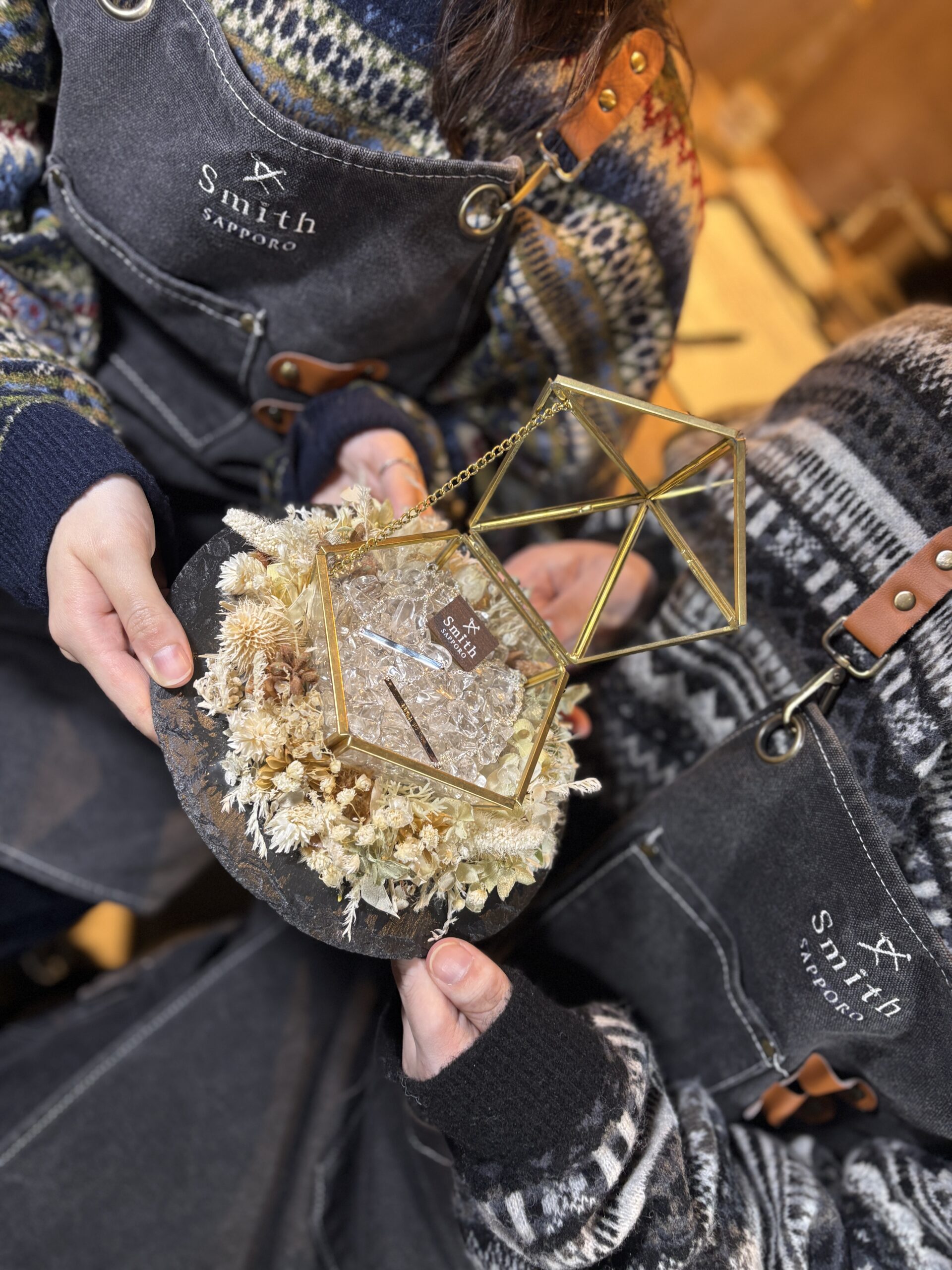お揃いのセーターと、優しさが滲み出る朗らかなお二人の雰囲気がとても素敵で、選ばれたデザインもお揃い。お二人の仲の良さに、こちらも温かな気持ちになりました。