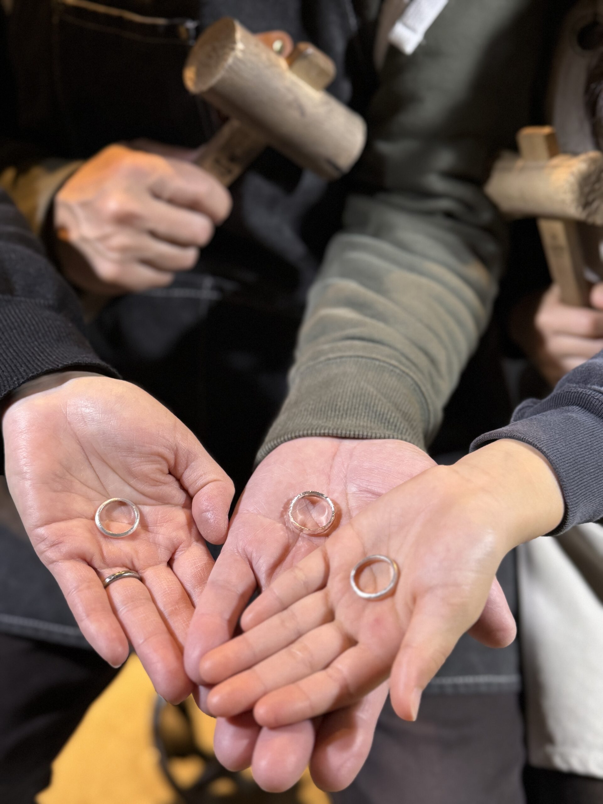 それぞれにお好みのデザインをお選びいただき、世界に一つだけの指輪を丁寧にお作りいただきました。制作中は終始和やかな雰囲気で、皆さまが仲良く楽しまれているご様子が大変印象的でした。