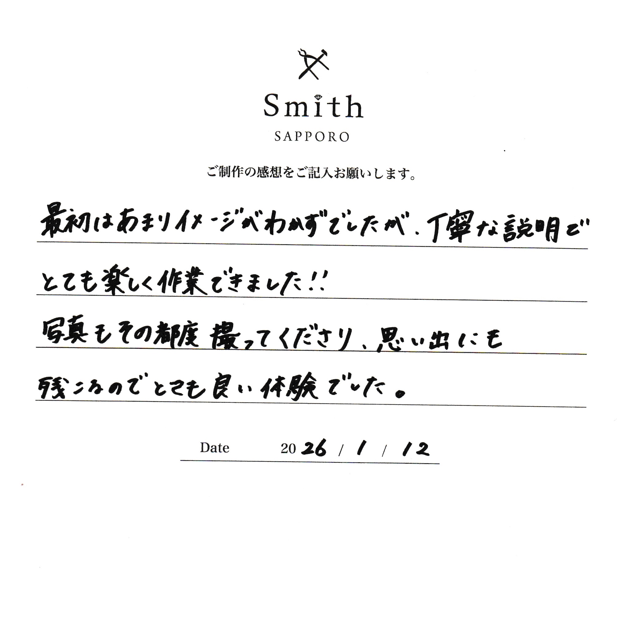 この度は、手作り結婚指輪のご制作にお越しいただき、誠にありがとうございました。