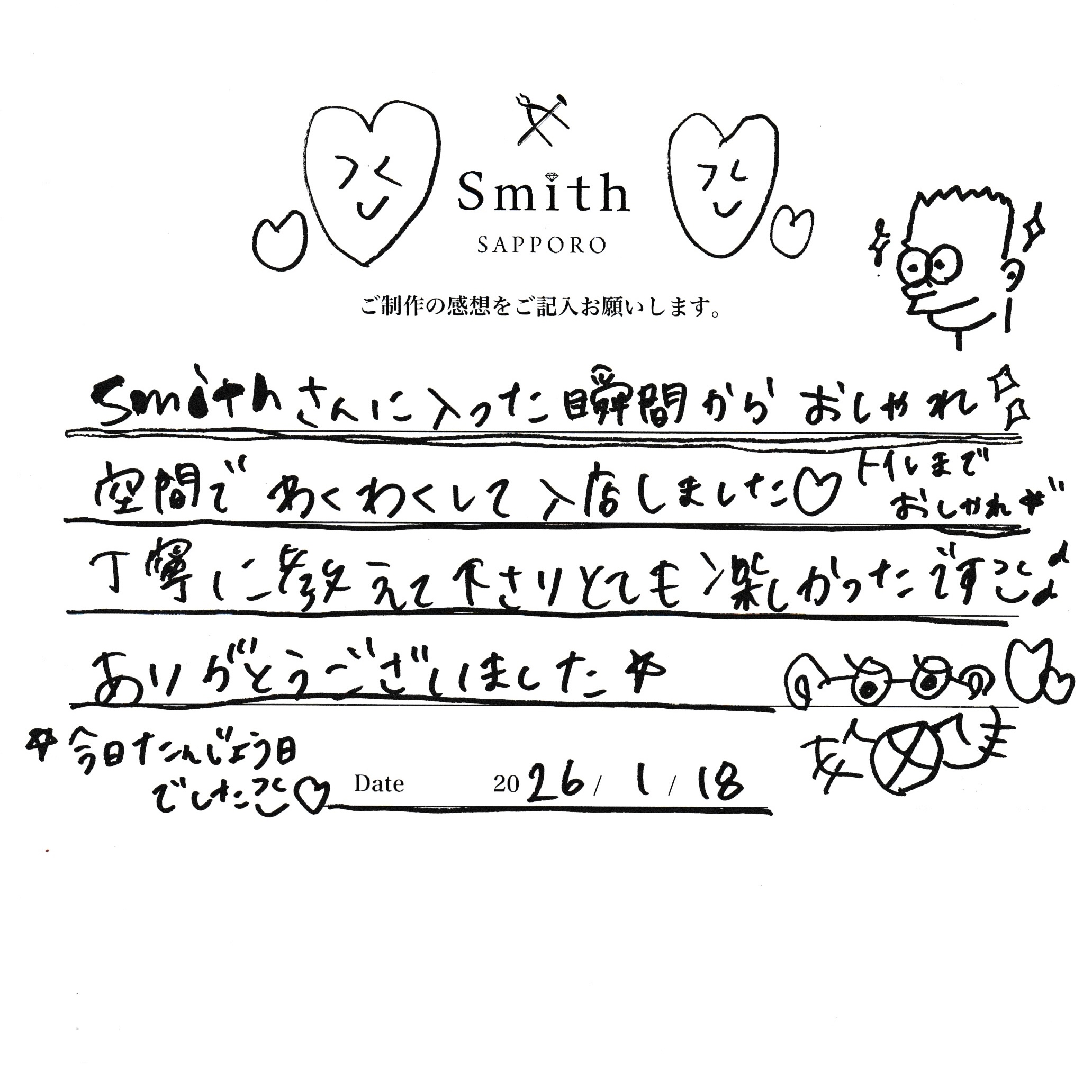 お誕生日という大切な日にご来店いただき、誠にありがとうございました。