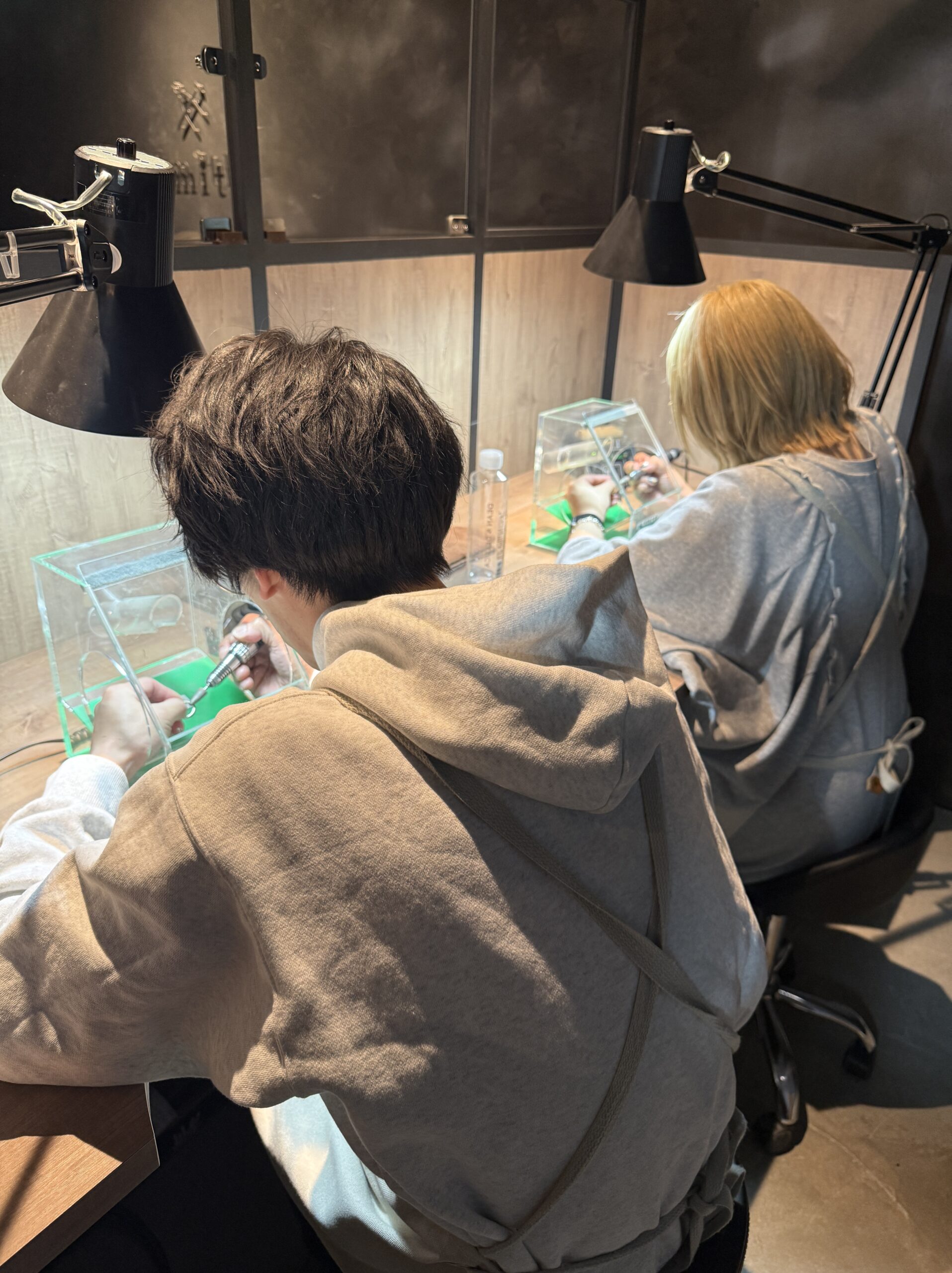 制作作業もお二人ともとても器用で終始スムーズに進み、特にご主人はお仕事柄、工具の扱いにも慣れていらっしゃり、美しい仕上がりが印象的でした。