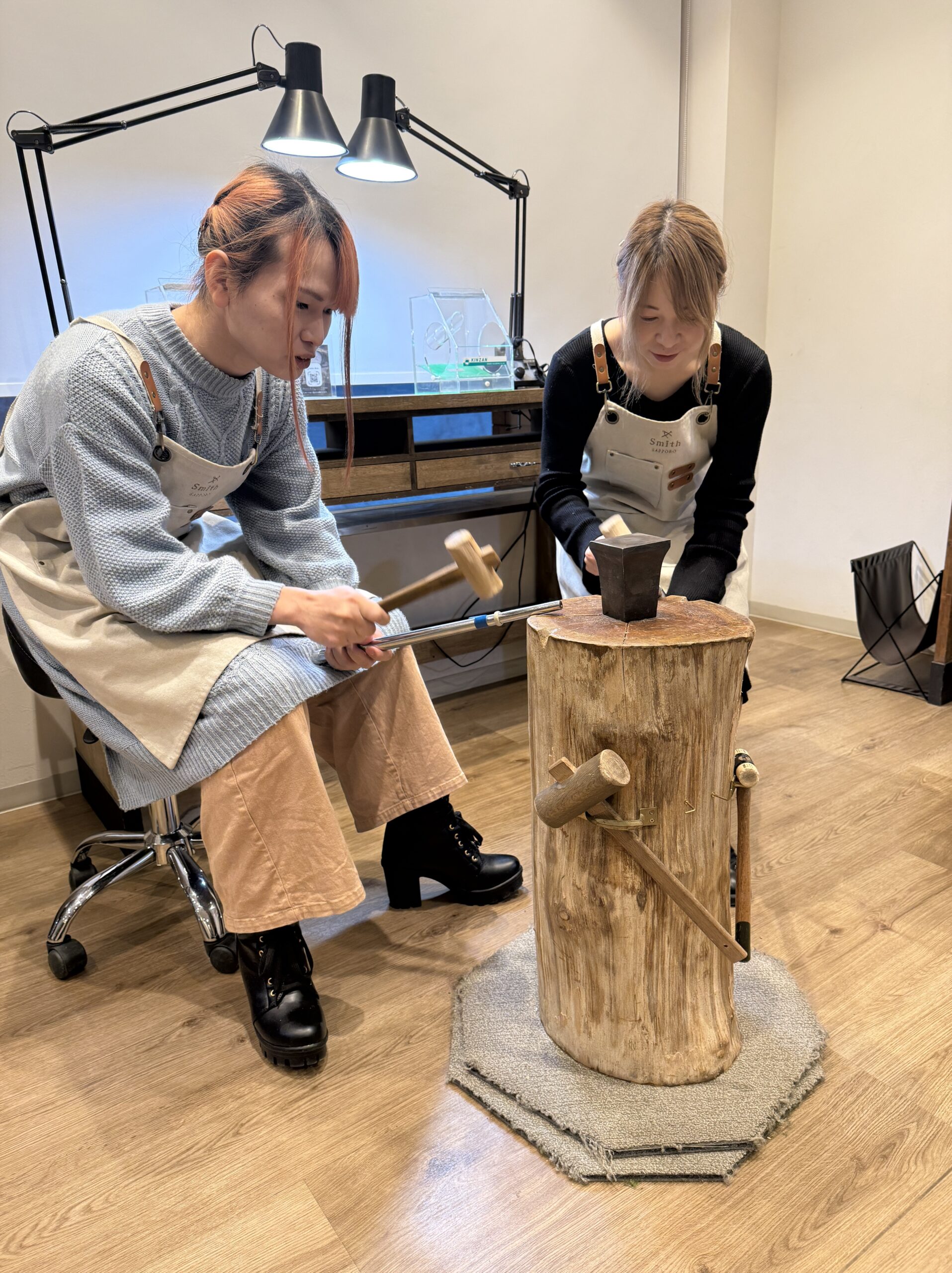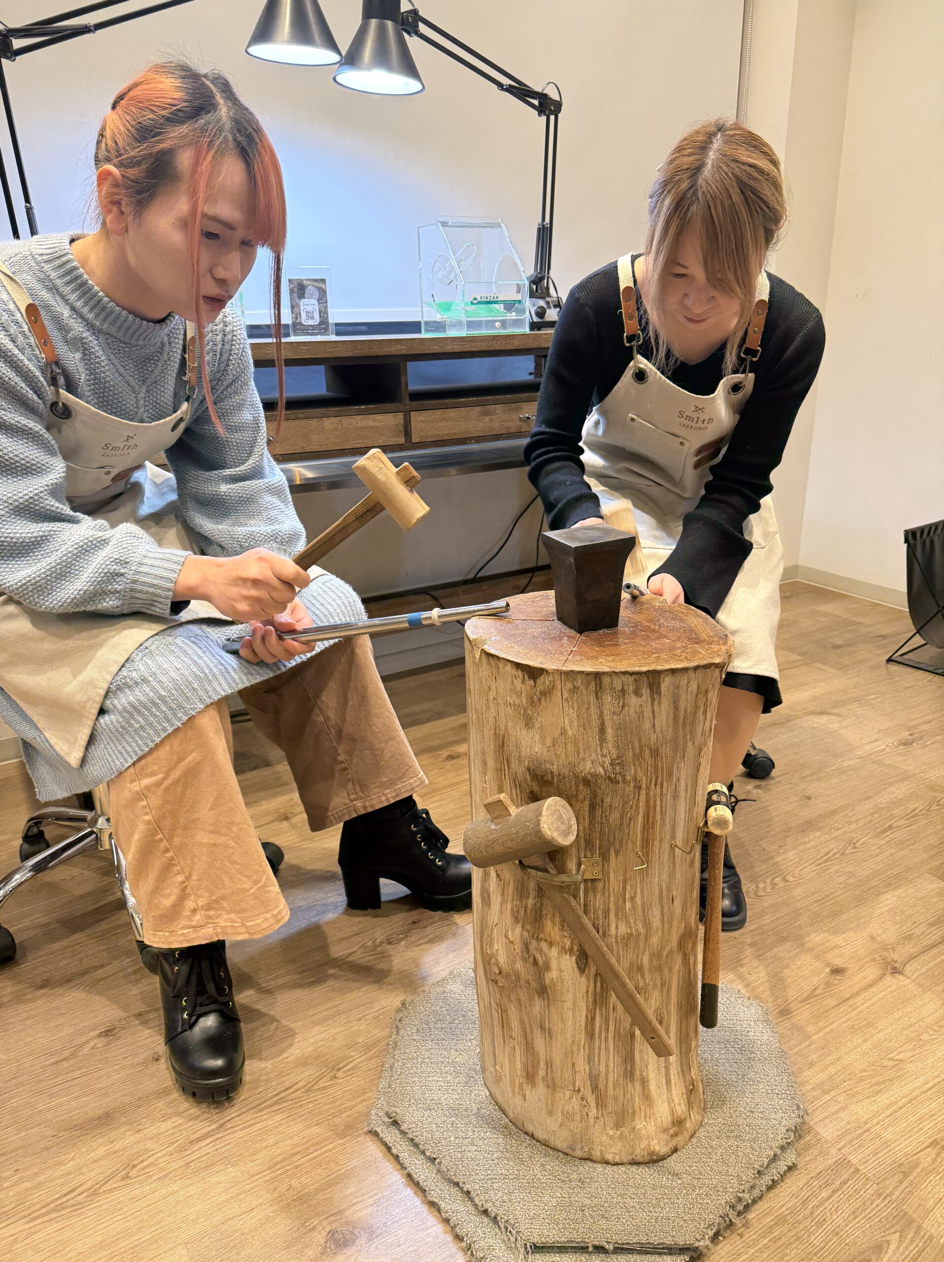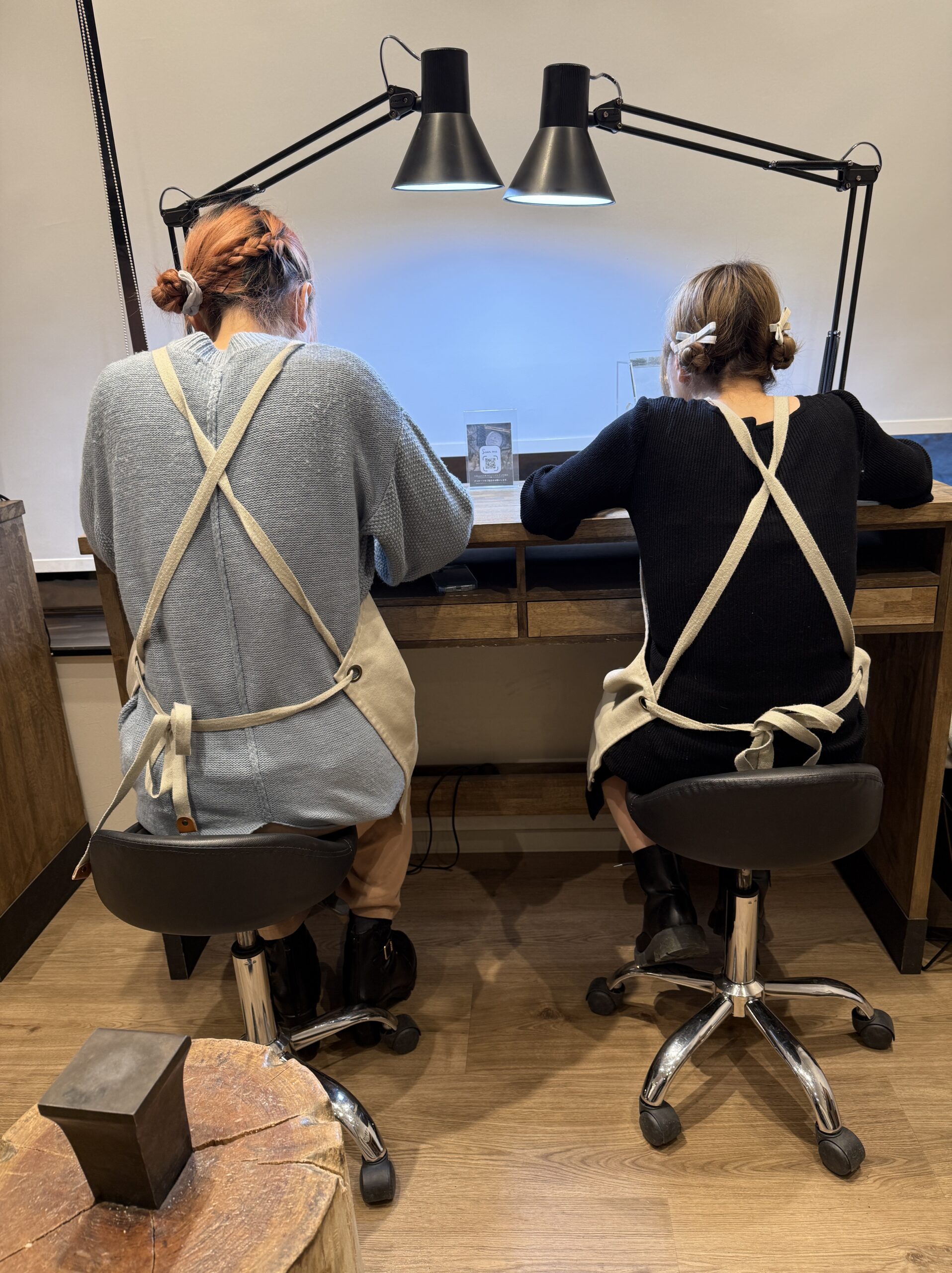 制作前からおふたりでたくさん相談を重ね、デザインを一つひとつ丁寧に考えていらっしゃる姿がとても印象的でした。シルバーを打つ工程は決して簡単ではありませんが、その分、お互いを思いやりながら真剣に向き合う時間は、指輪以上に大切な思い出になったのではないかと思います。完成したペアリングには、おふたりらしさと温かさがしっかりと込められていました。