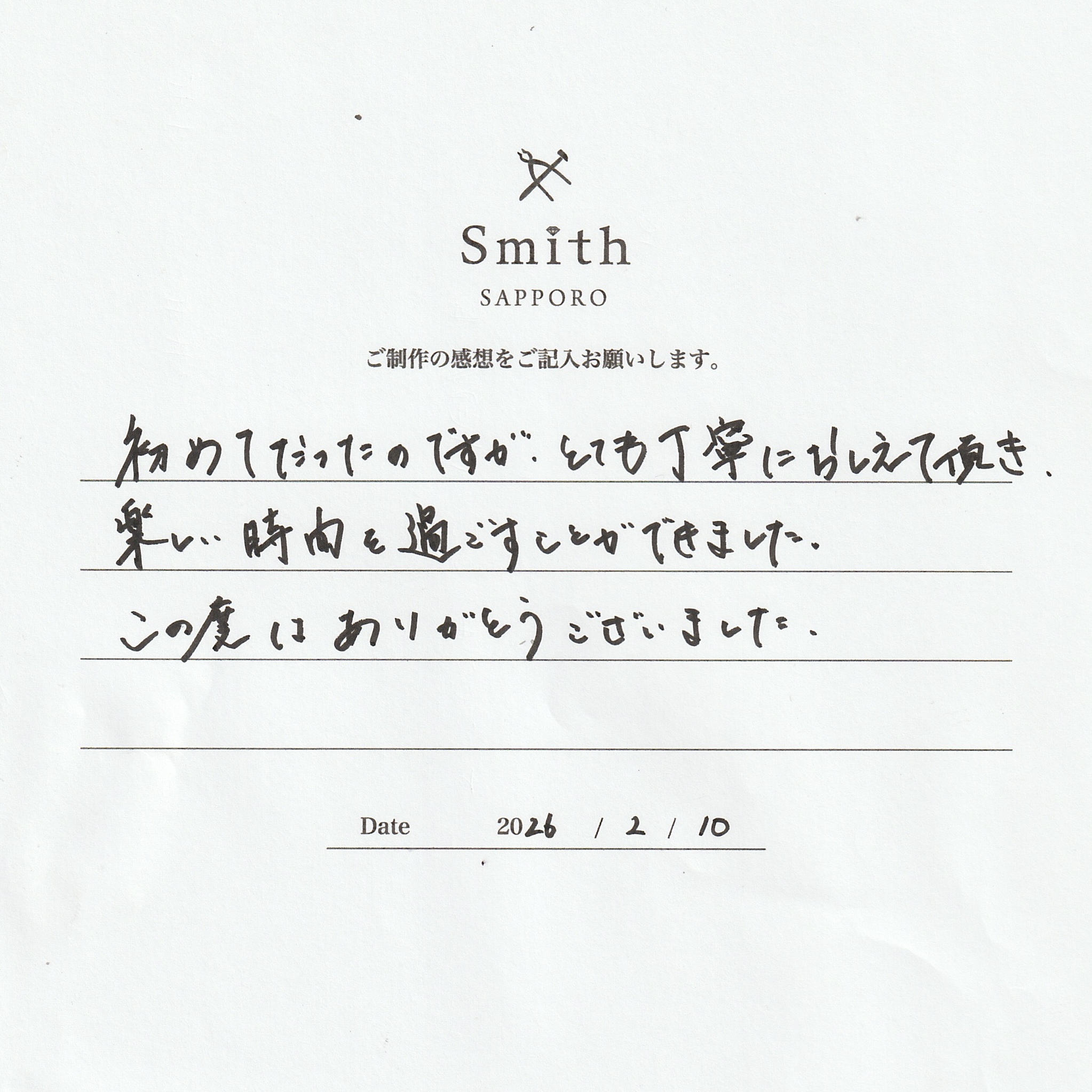この度はペアリング制作のため、工房Smith京王プラザホテル札幌店にご来店いただき、誠にありがとうございました。