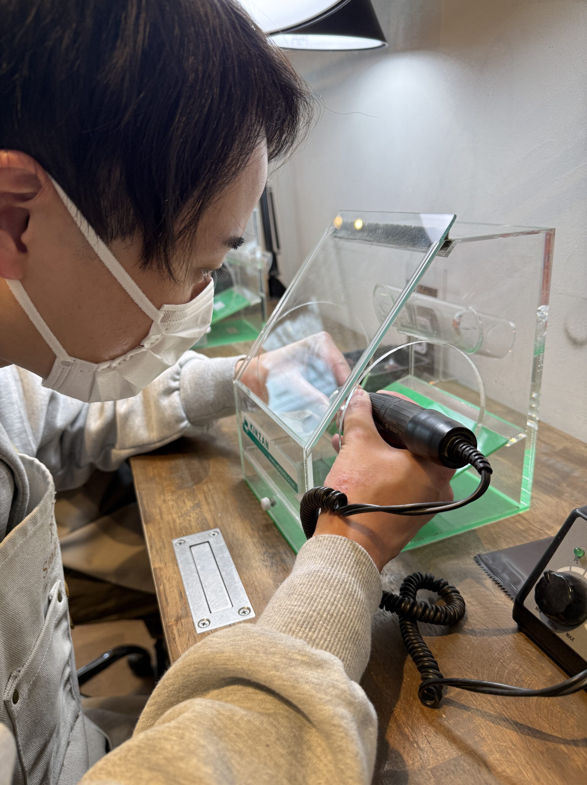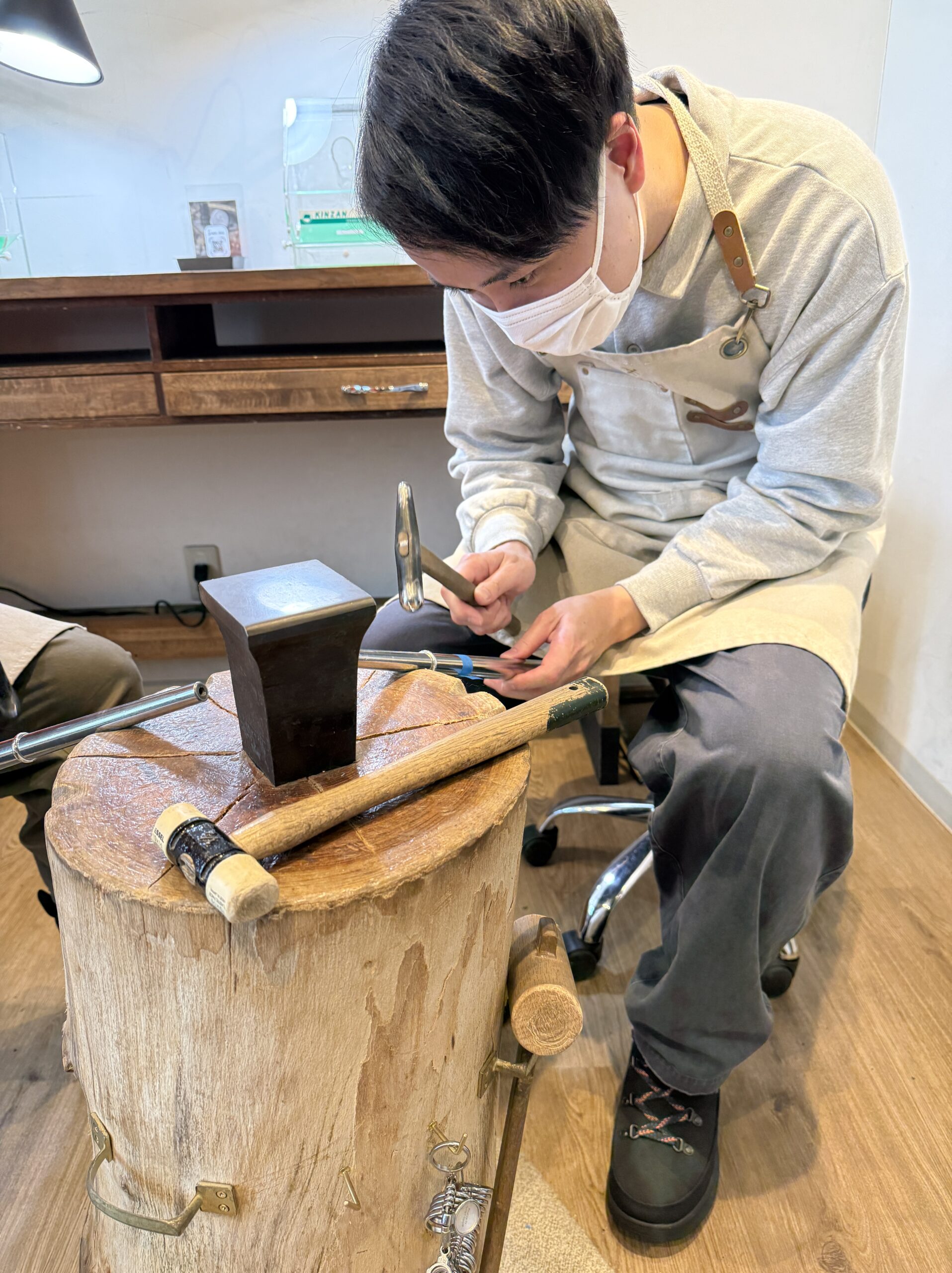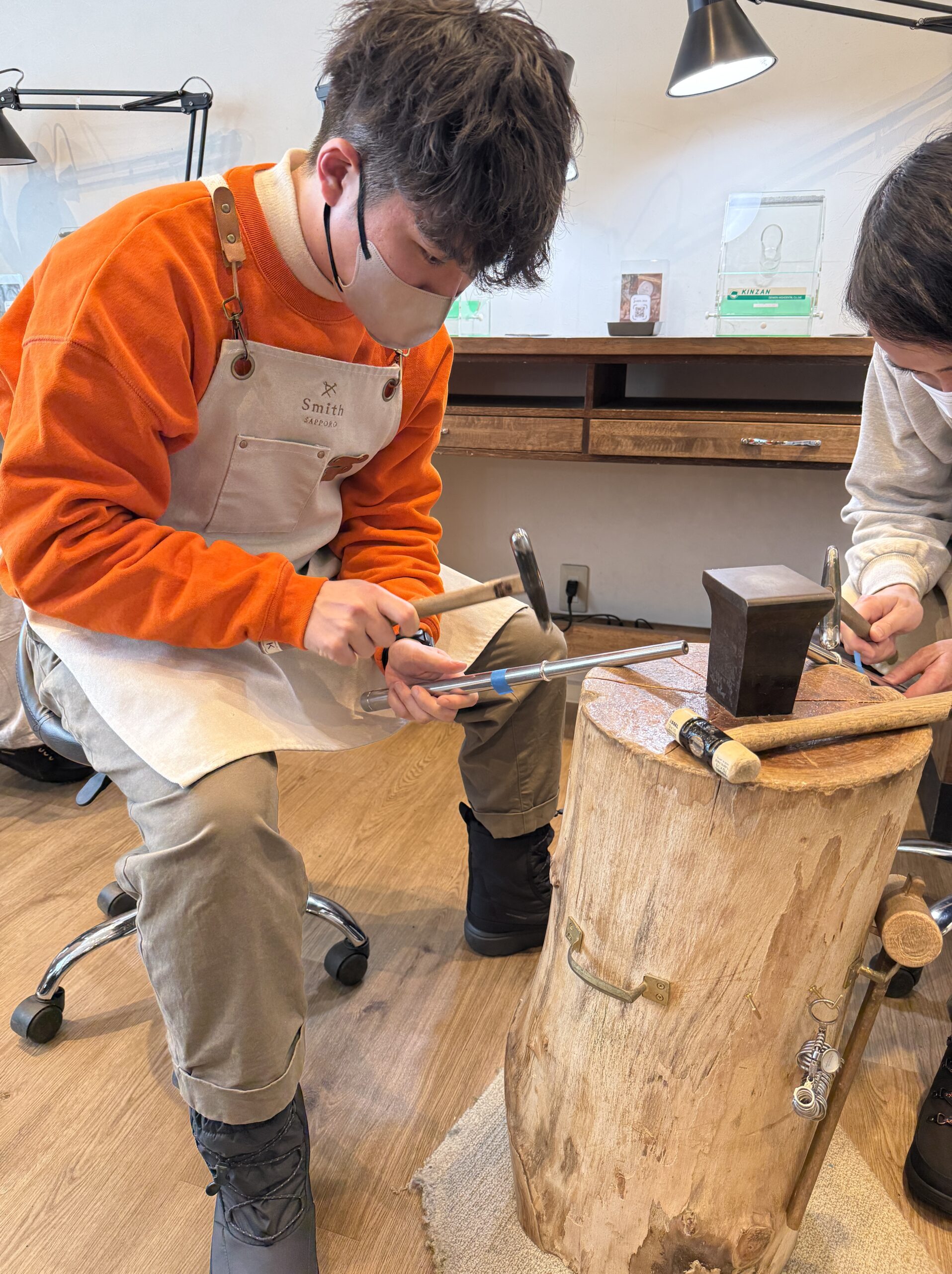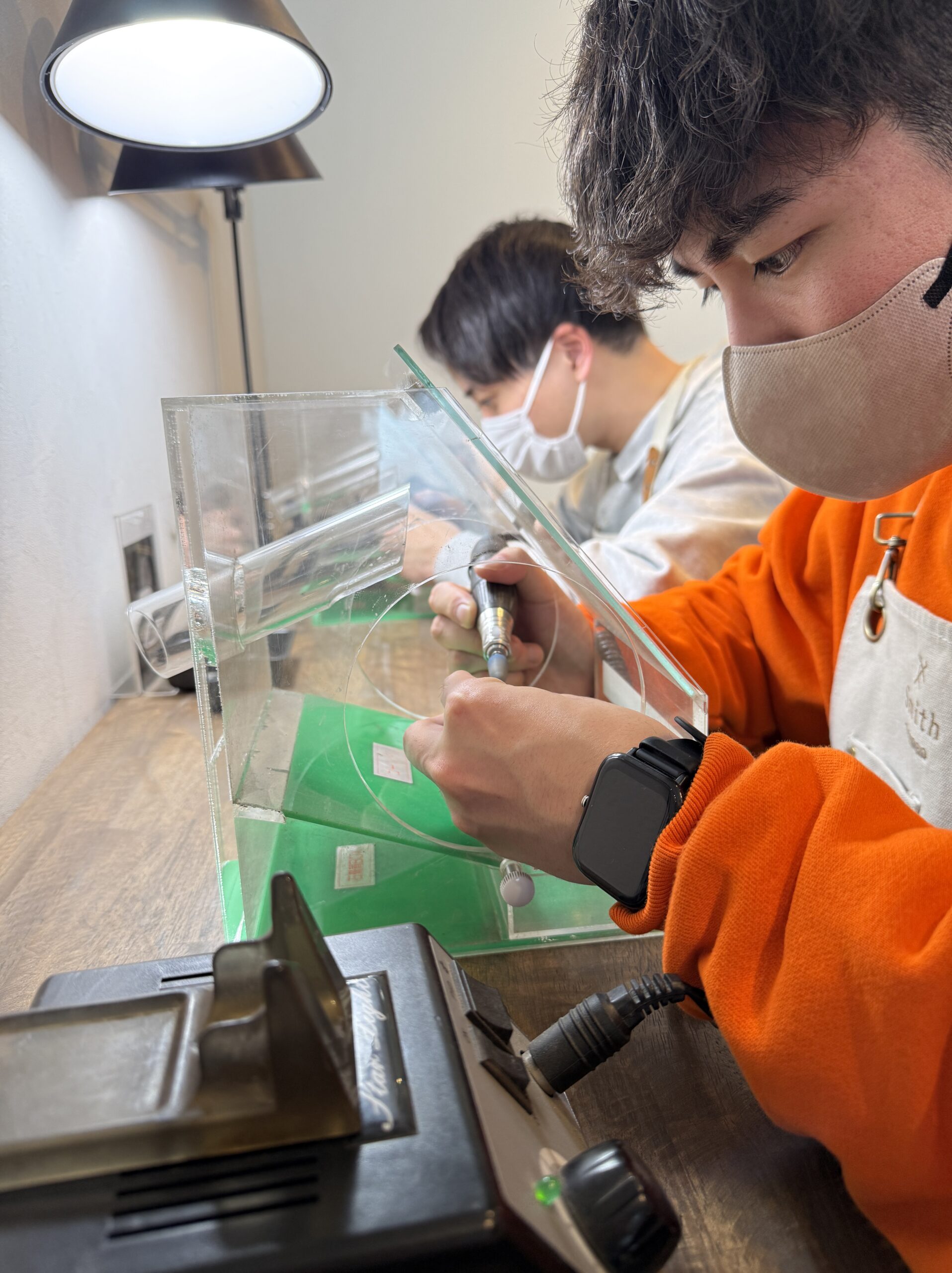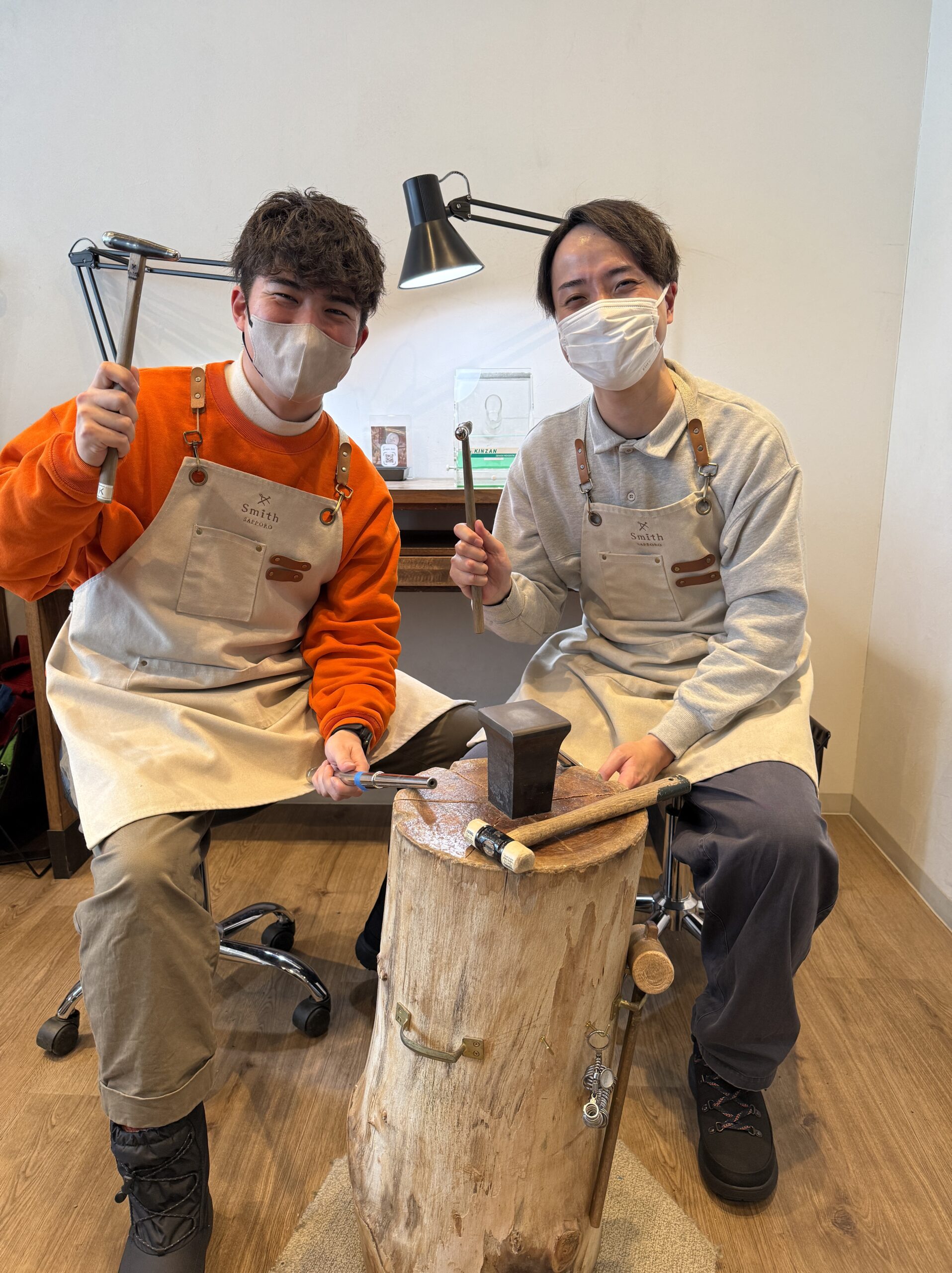 札幌旅行の大切な思い出のひとつとして当店でのご制作をお選びいただけたこと、スタッフ一同大変嬉しく拝見いたしました。最初は緊張されていたご様子も、制作が進むにつれておふたりで楽しみながら取り組まれていた姿がとても印象的でした。ひとつひとつ丁寧に作業されていた時間そのものが、指輪とともに記憶に残る体験になっていれば何よりでございます。