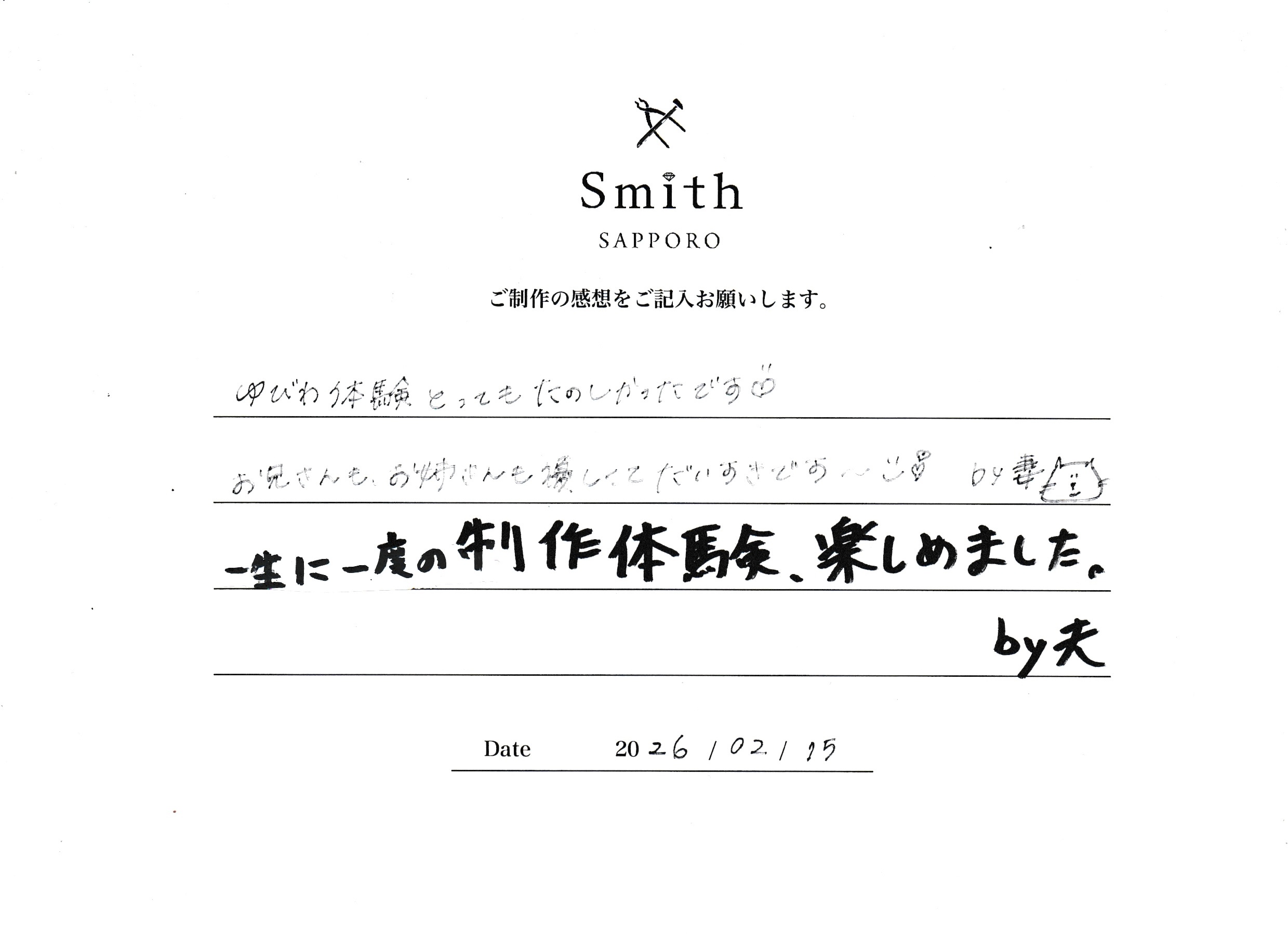 この度は、おふたりの大切な結婚指輪作りに工房Smith札幌本店をお選びいただき、誠にありがとうございました!