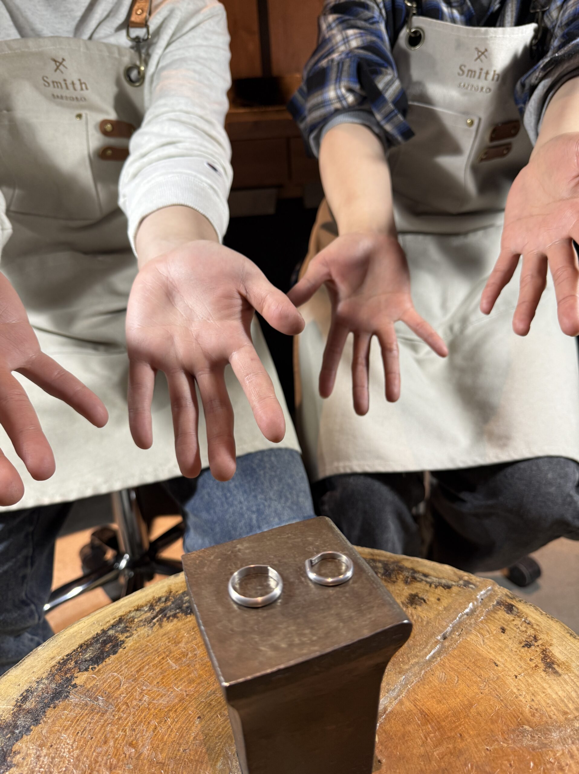 お互いに優しく声をかけ合いながら作業される姿もとても仲睦まじく、温かい時間でした。仕上がりも完璧で、美しく整った指輪が完成しましたね。