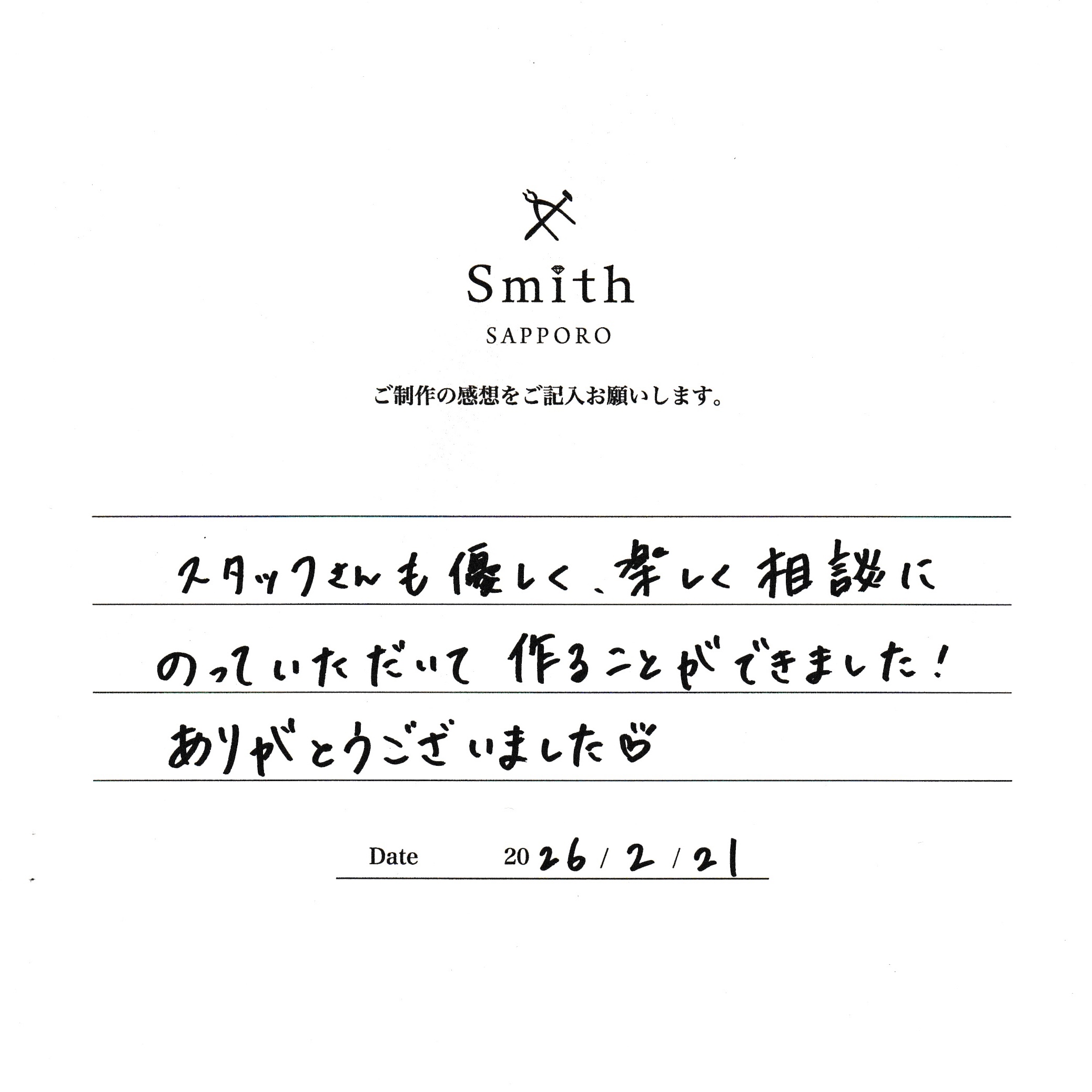 スタッフさんも優しく、楽しく相談にのっていただいて楽しく作ることができました!