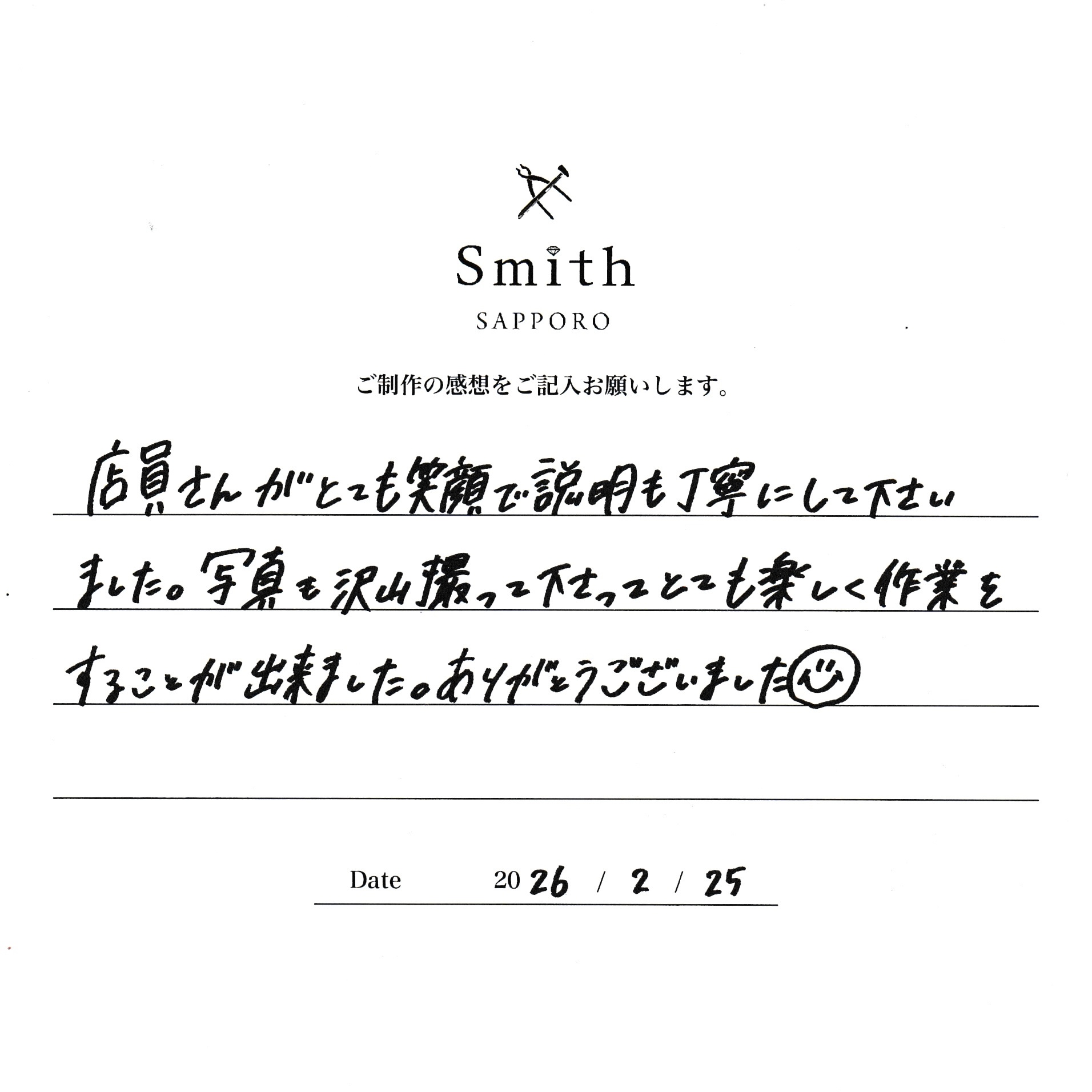 この度は手作り結婚指輪の制作にご来店いただき、誠にありがとうございました。