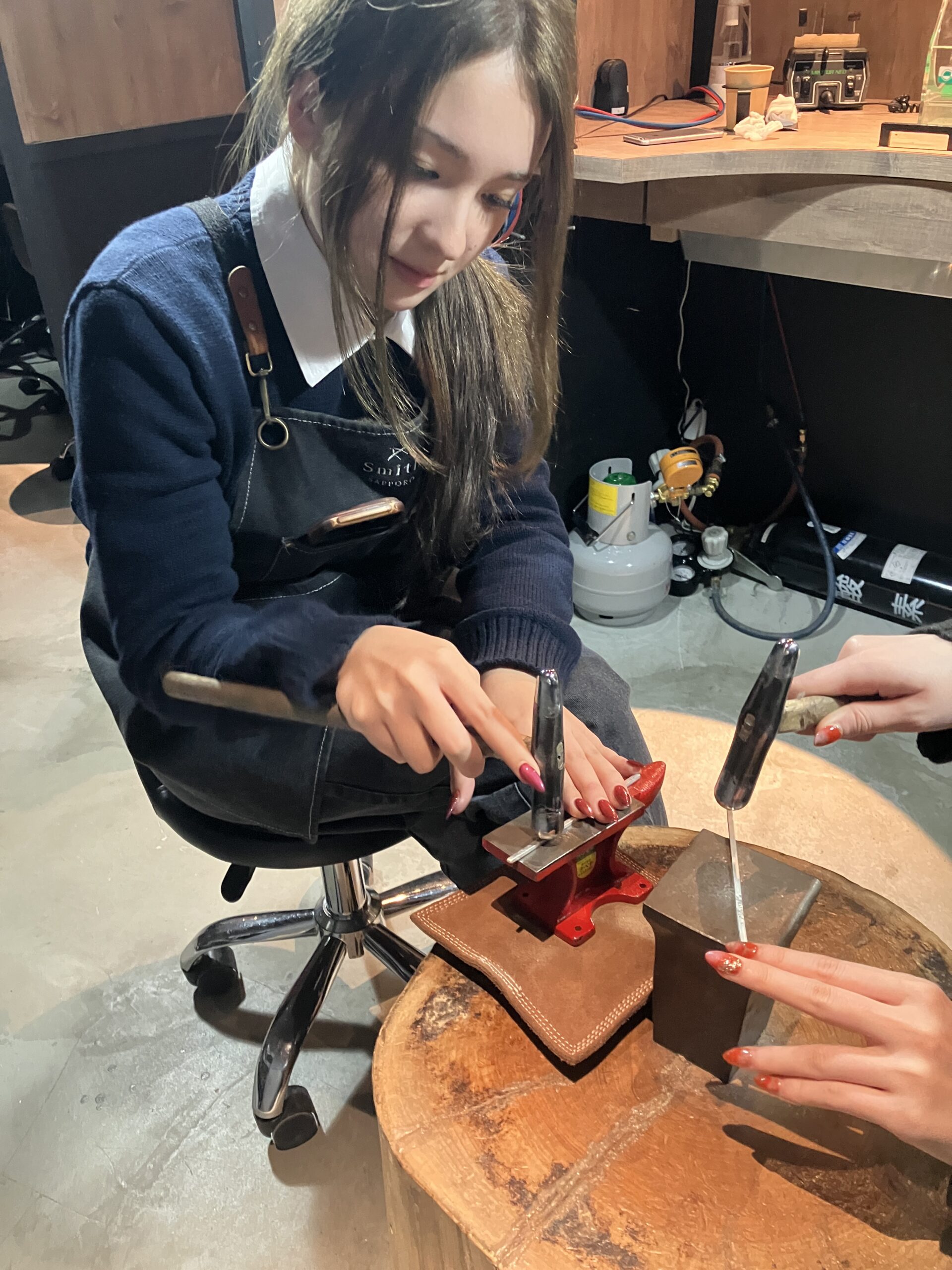 お二人が驚くほど阿吽の呼吸」で、迷いなく器用に金属を形作っていく制作の過程を拝見し、私たちスタッフも思わず見惚れてしまいました。