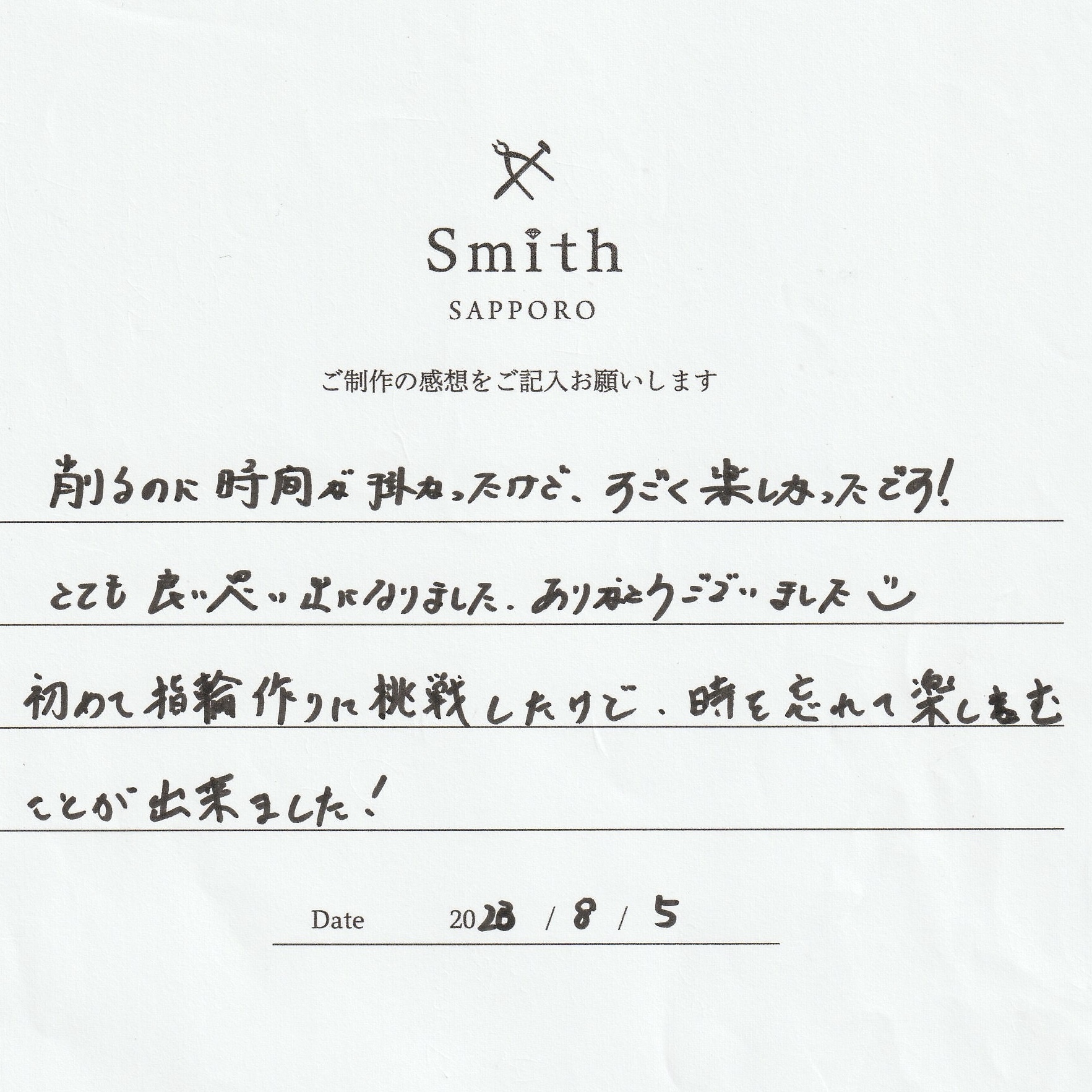 この度は、工房スミス京王プラザホテル札幌店での手作りペアリングのご制作誠にありがとうございました。