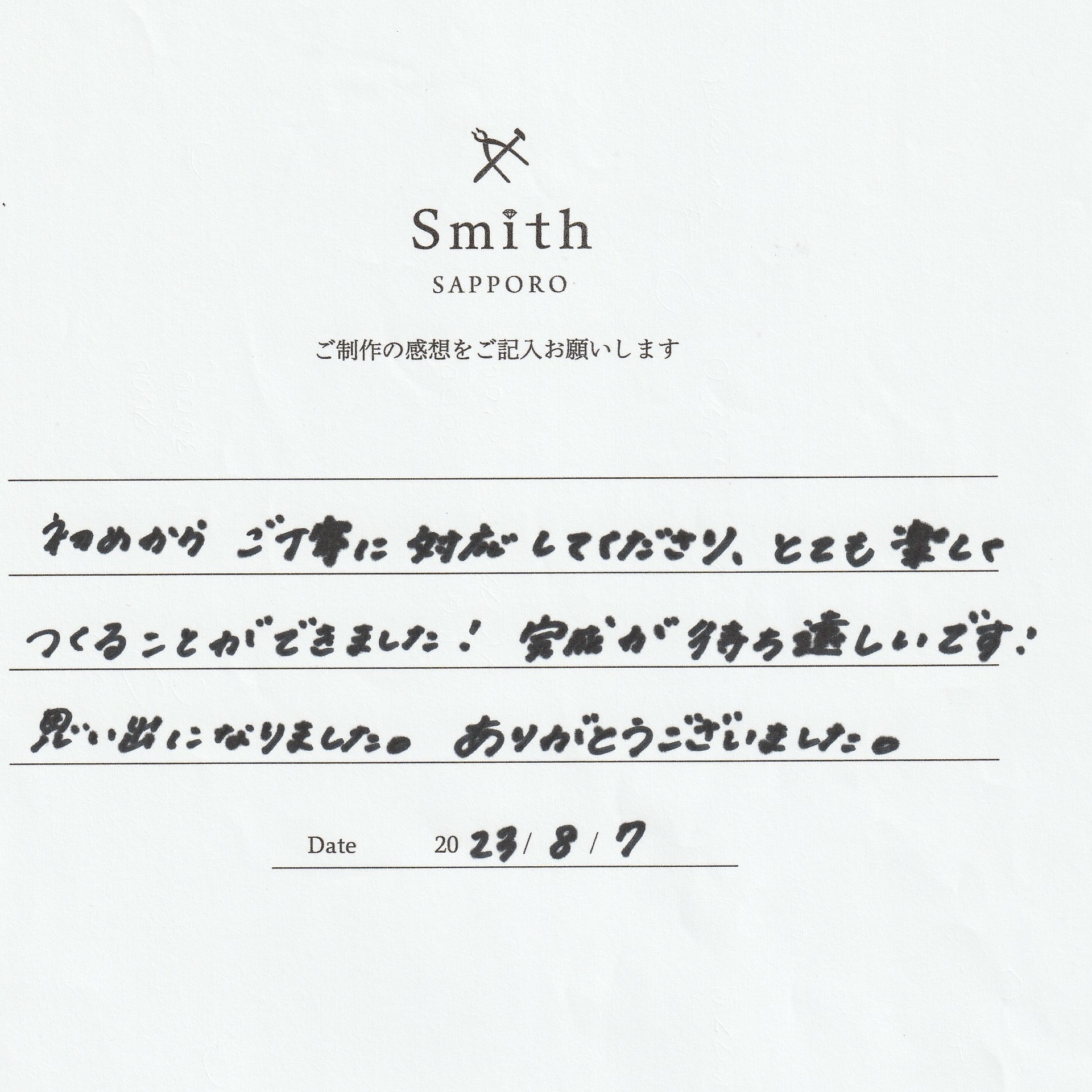 工房Smith札幌でお客様がご制作された指輪をご紹介