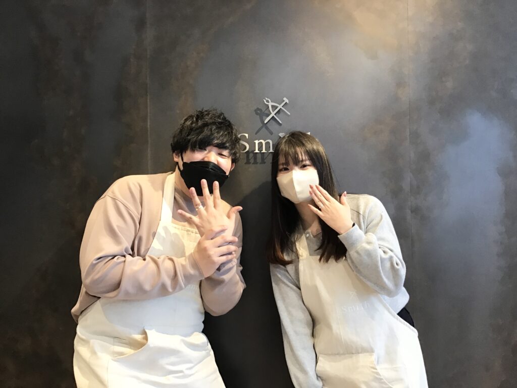 J様・F様【1本の金属の棒を曲げたり叩いたり磨いたりして指輪の形にしていくのが楽しかったです】