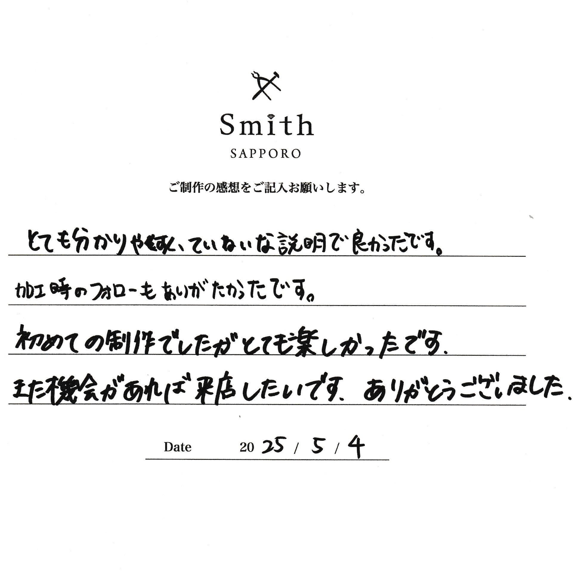 また機会があれば来店したいです。ありがとうございました。