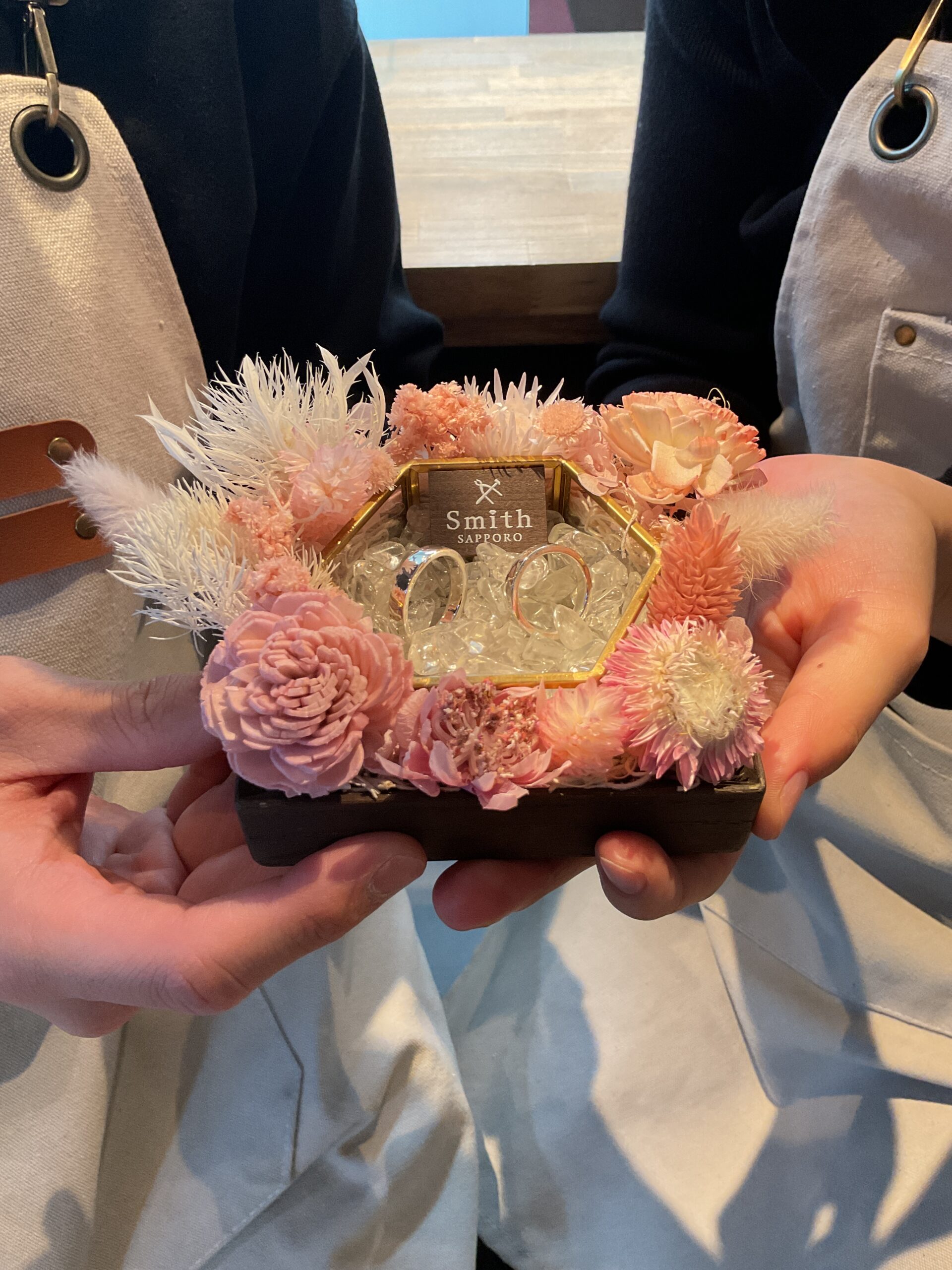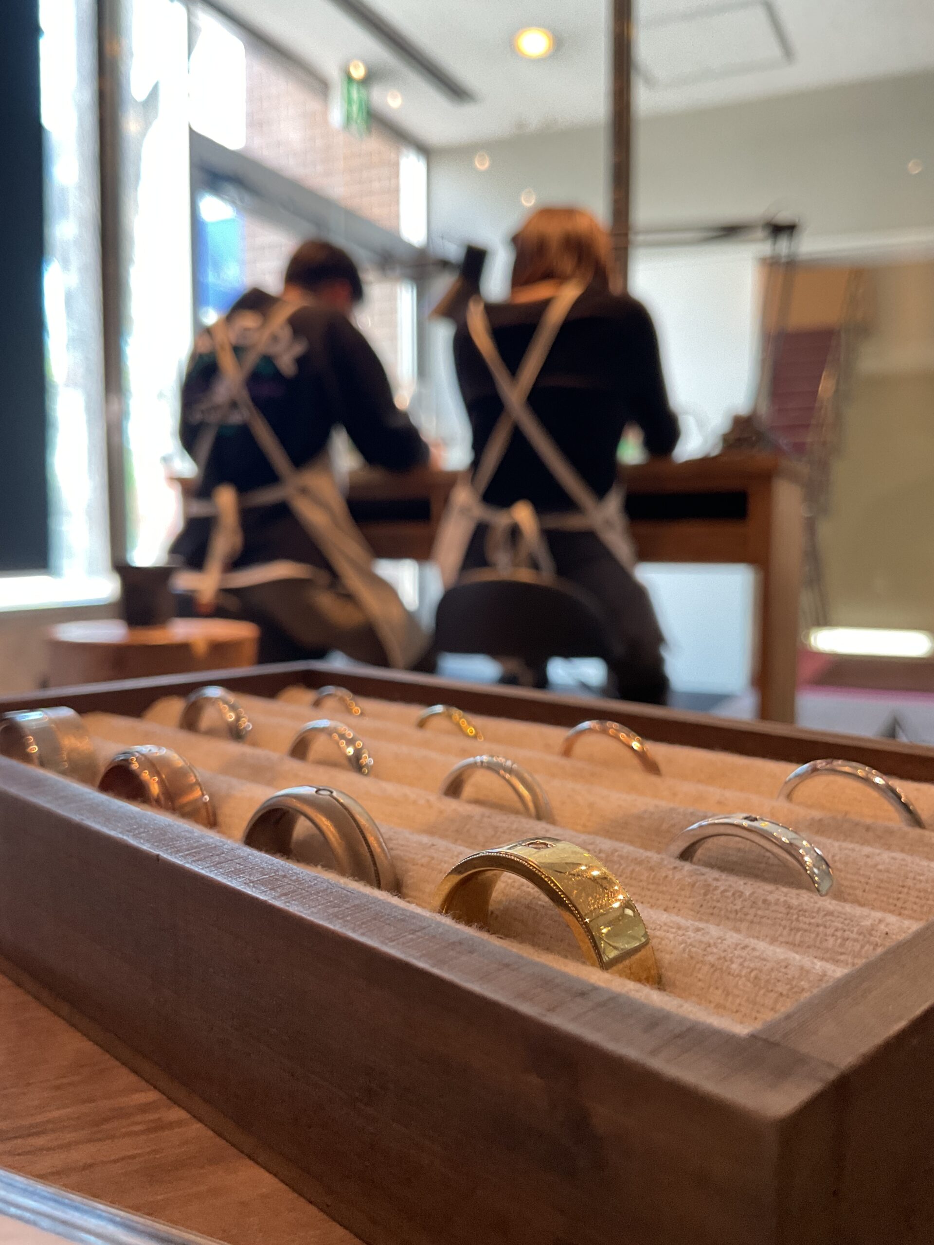 基本の形は3mmと4mmの甲丸リングにテクスチャーは鏡面とマットをお選びいただきました。