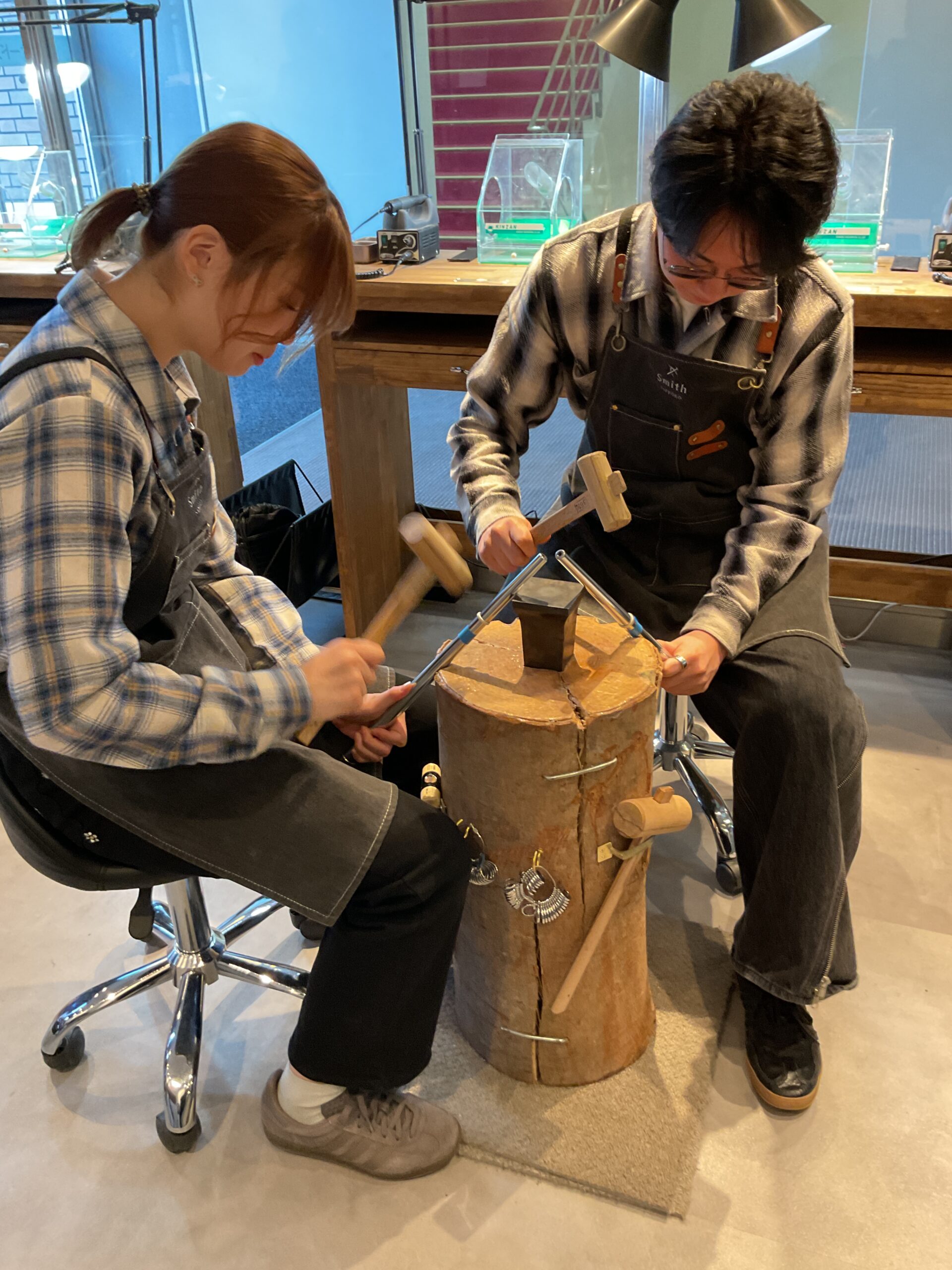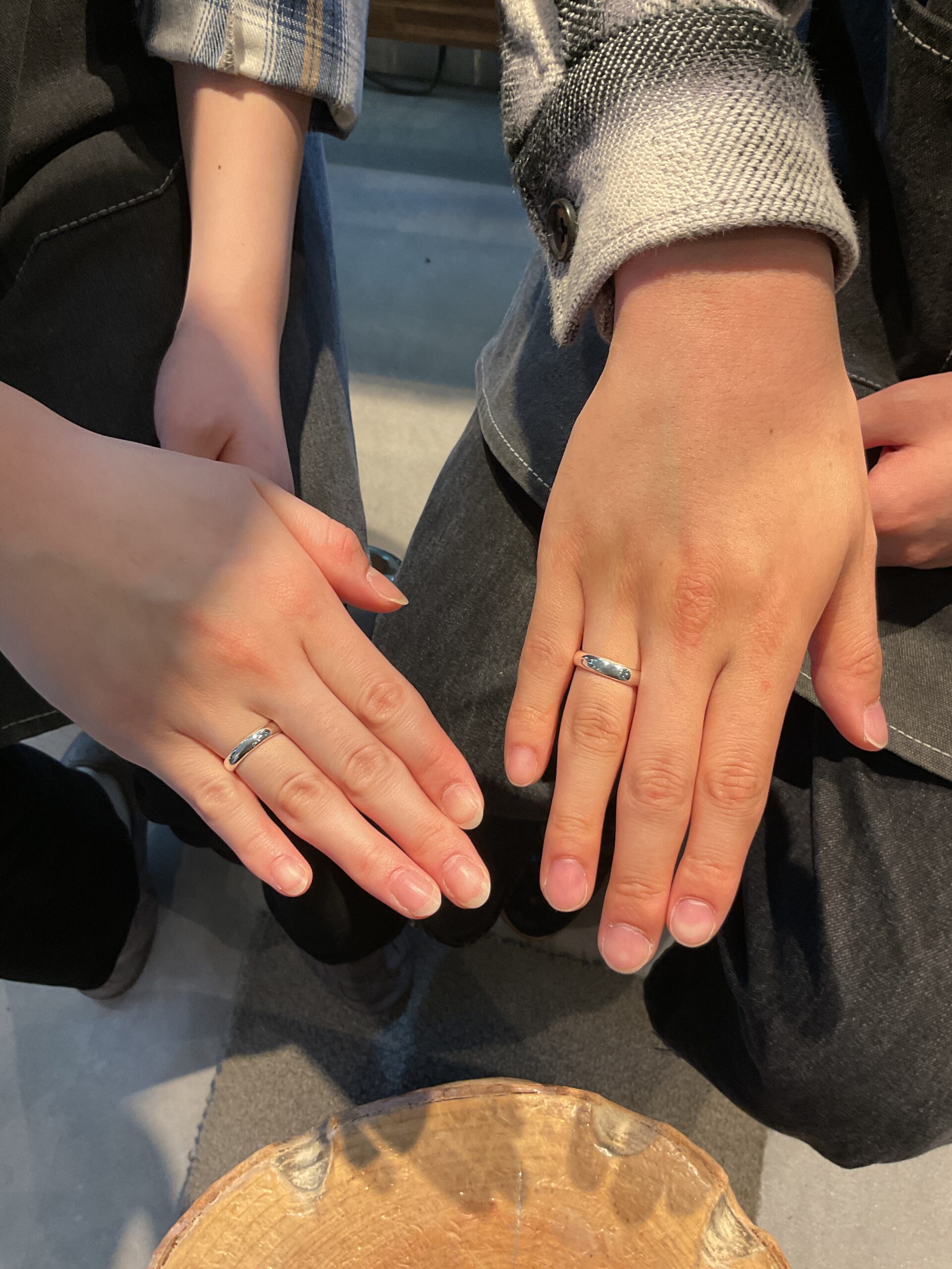 基本の形は4mmと5mmの甲丸リングにテクスチャーは鏡面をお選びいただきました。