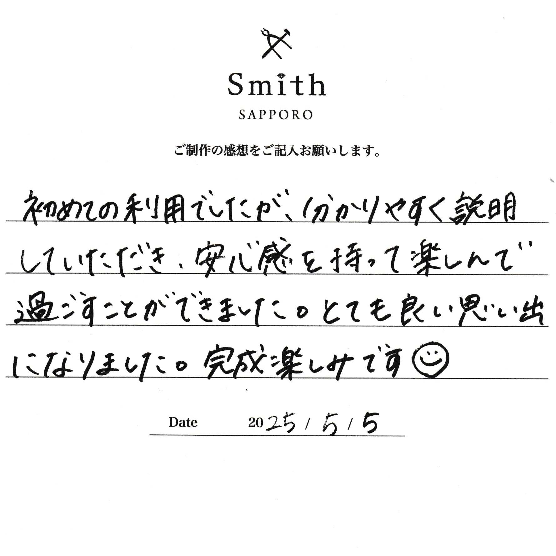 とても良い思い出になりました。完成が楽しみです。