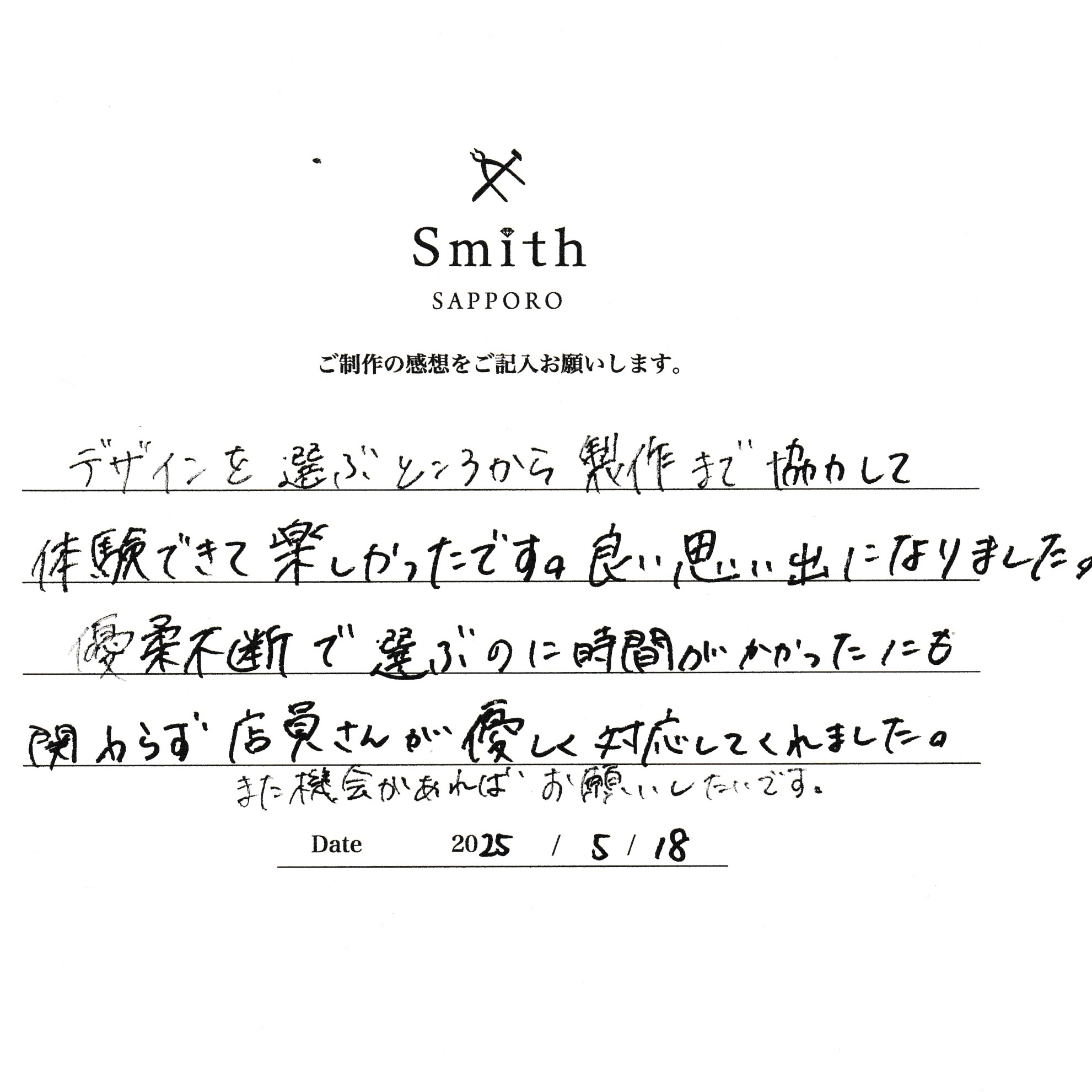 M 先生、O 女士 [我很享受從選擇設計到製作的合作經驗]。