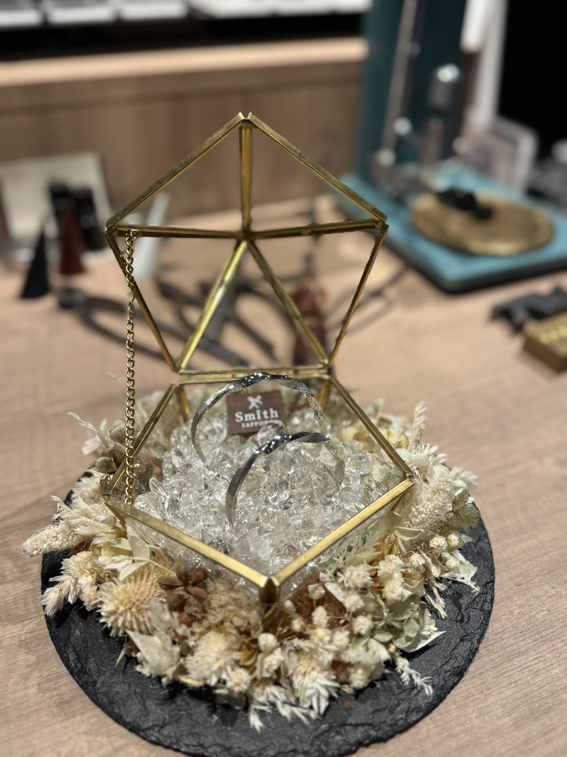 完成したバングルは、お二人らしさがしっかりと表現された素敵なデザインで、とても綺麗な仕上がりでした。