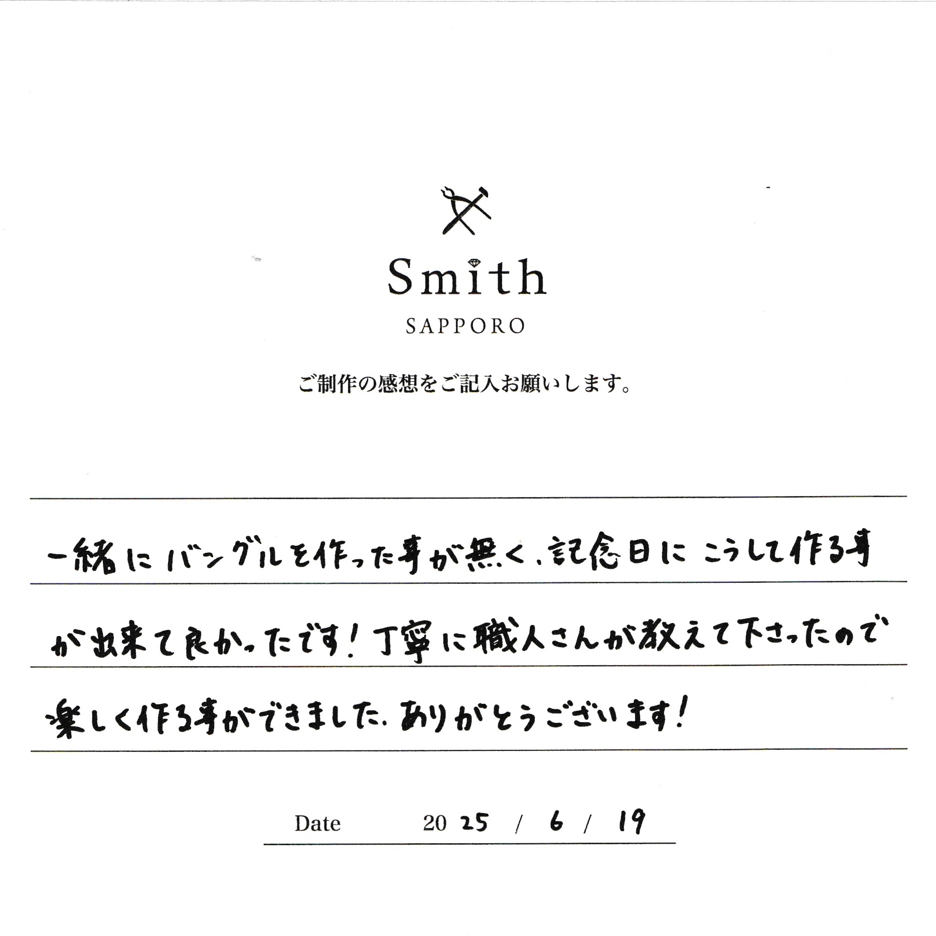 一緒にバングルを作った事が無く、記念日にこうして作る事が出来て良かったです!