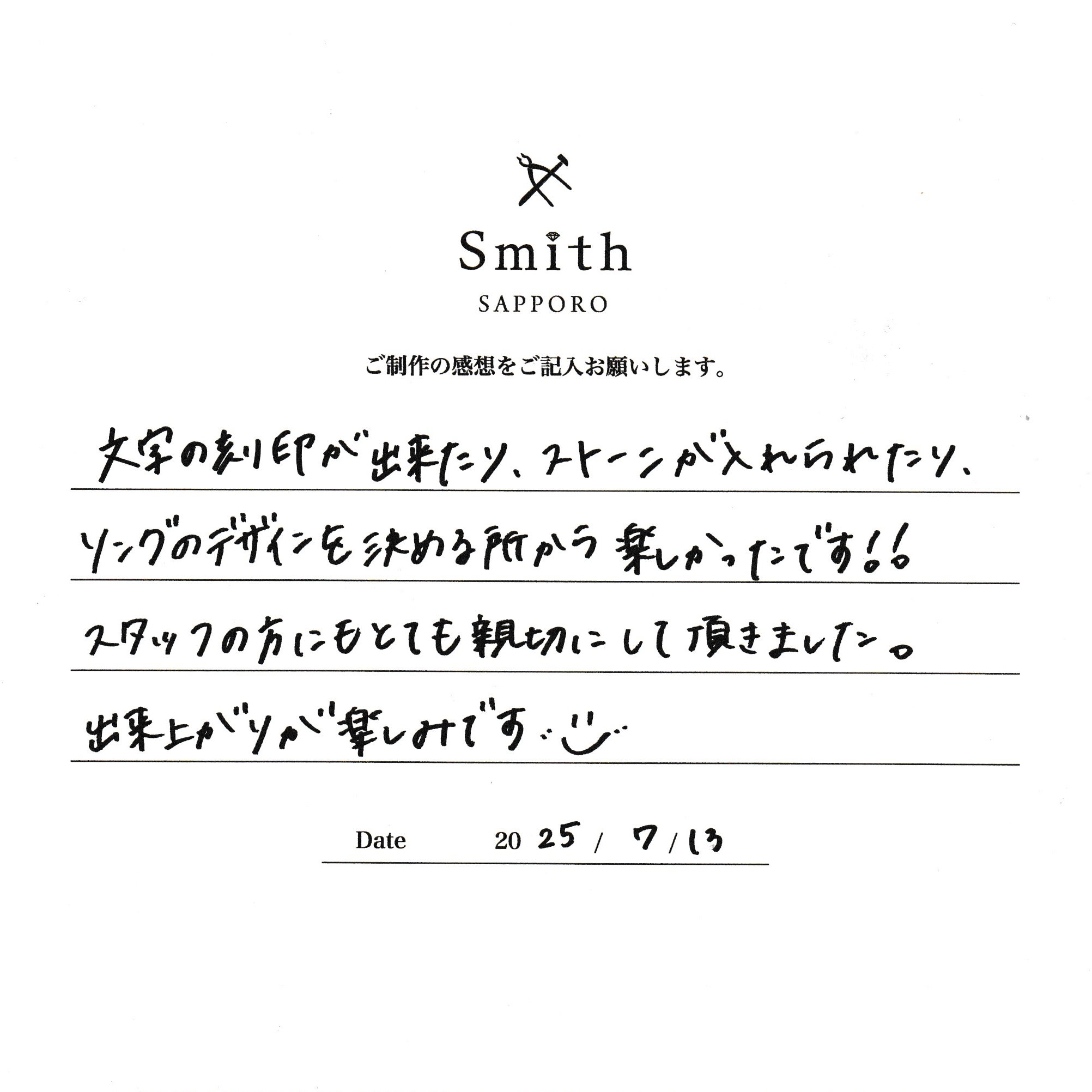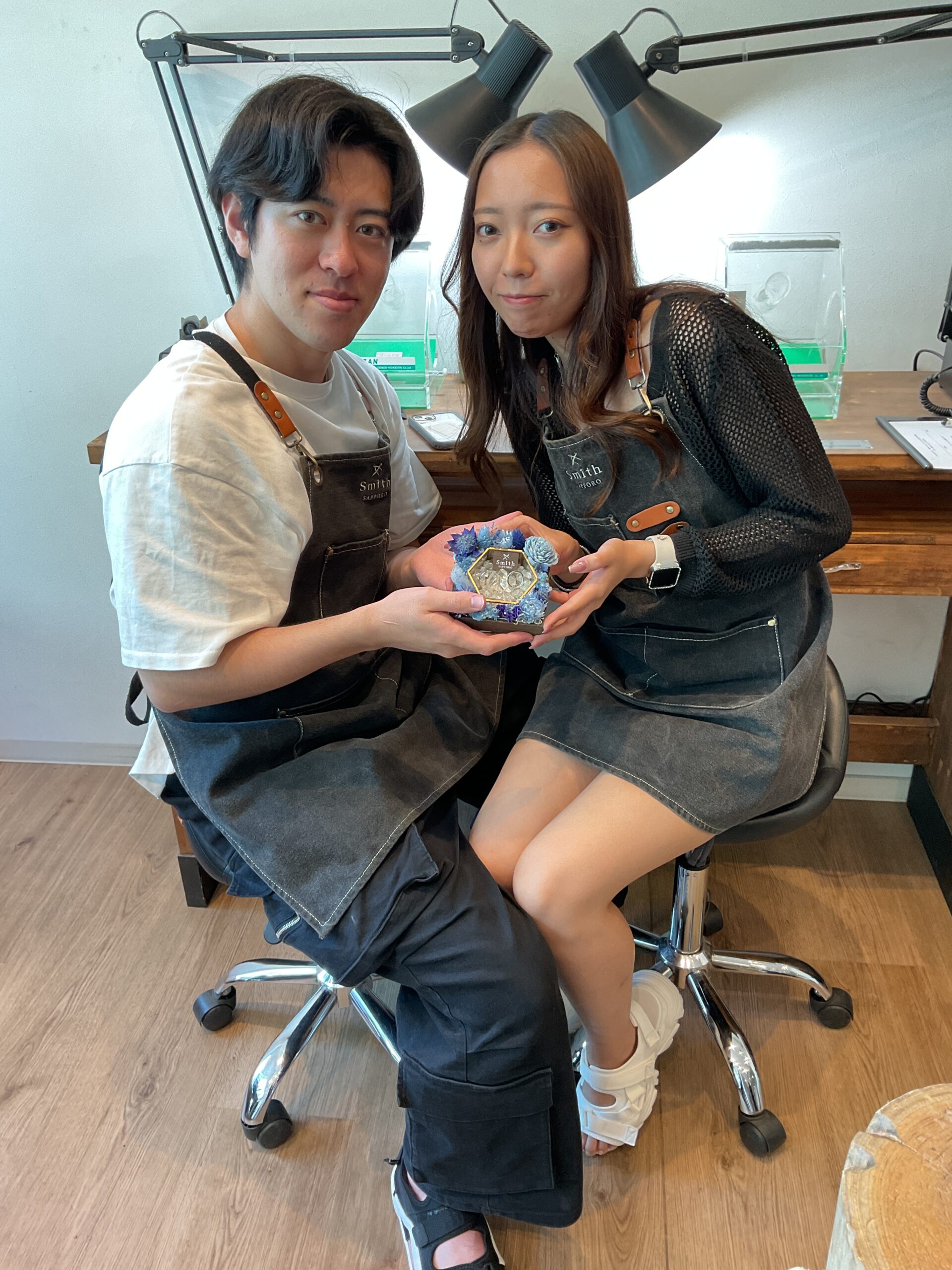 文字の刻印が出来たり、ストーンが入れられたり、リングのデザインを決める所から楽しかったです!