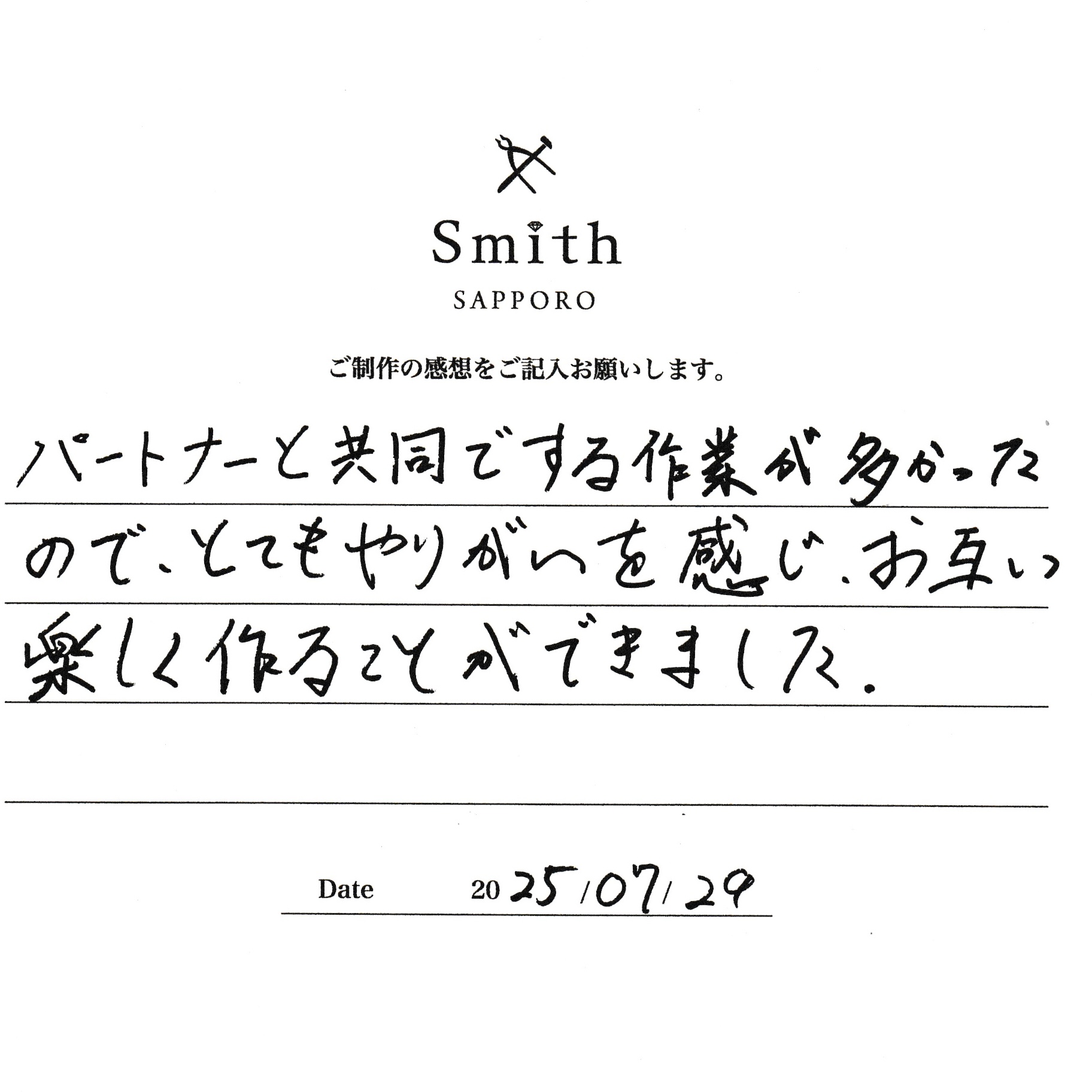 S様・Y様【店員さんが親切かつ丁寧で、楽しく制作することができました】