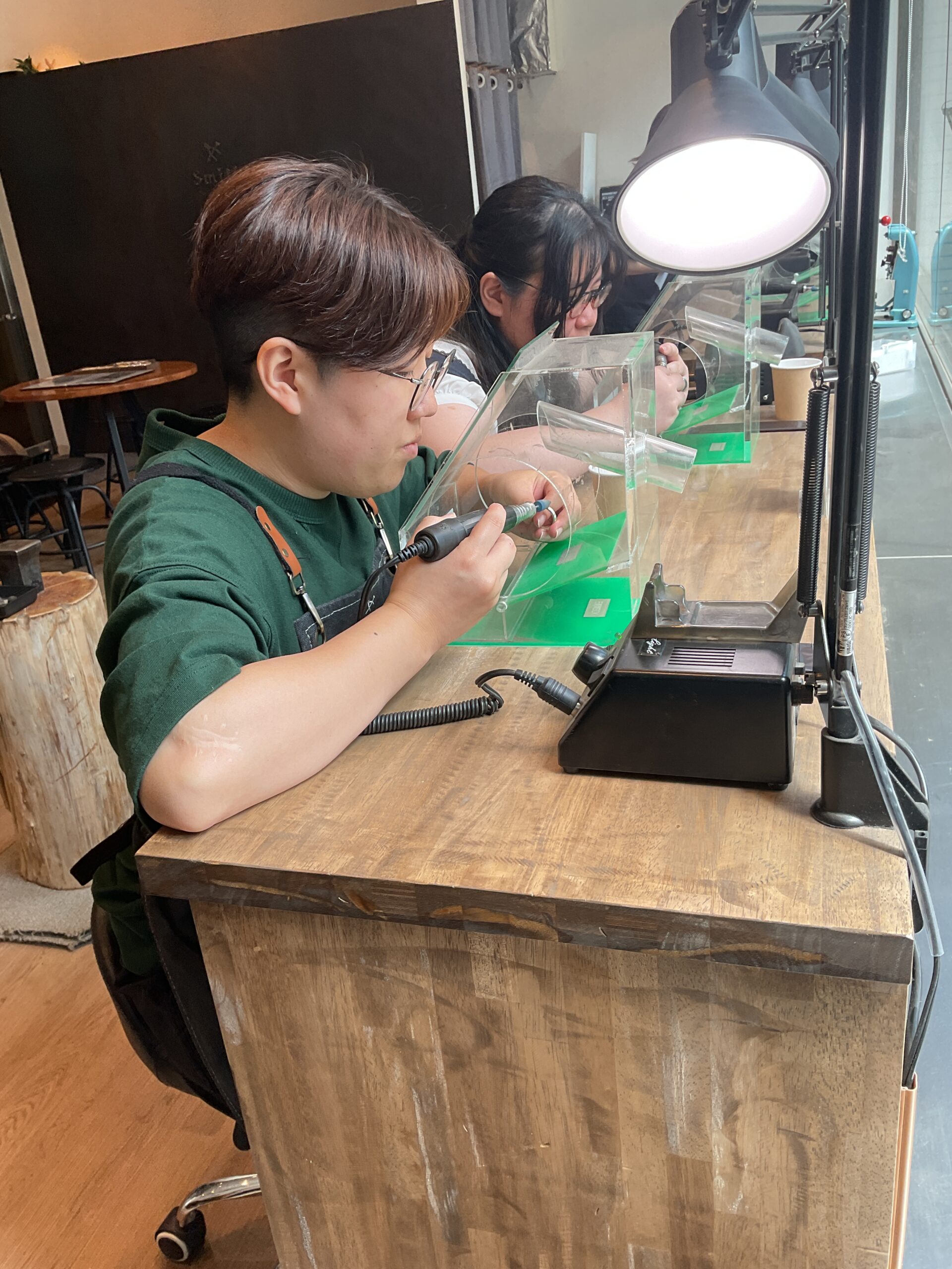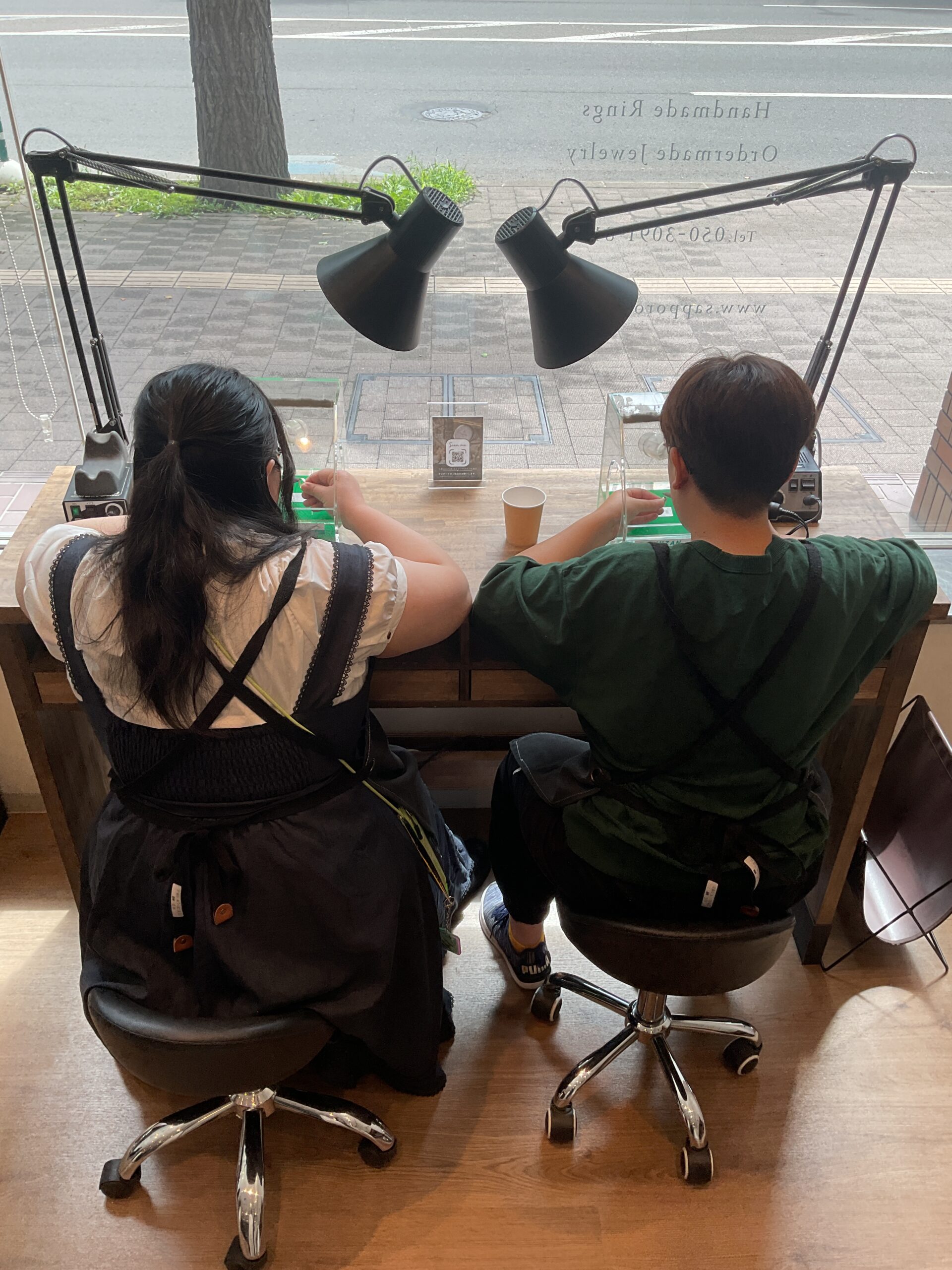 基本の形は3mmの平打ちリングに、テクスチャーはスターダストをお選びいただきました。