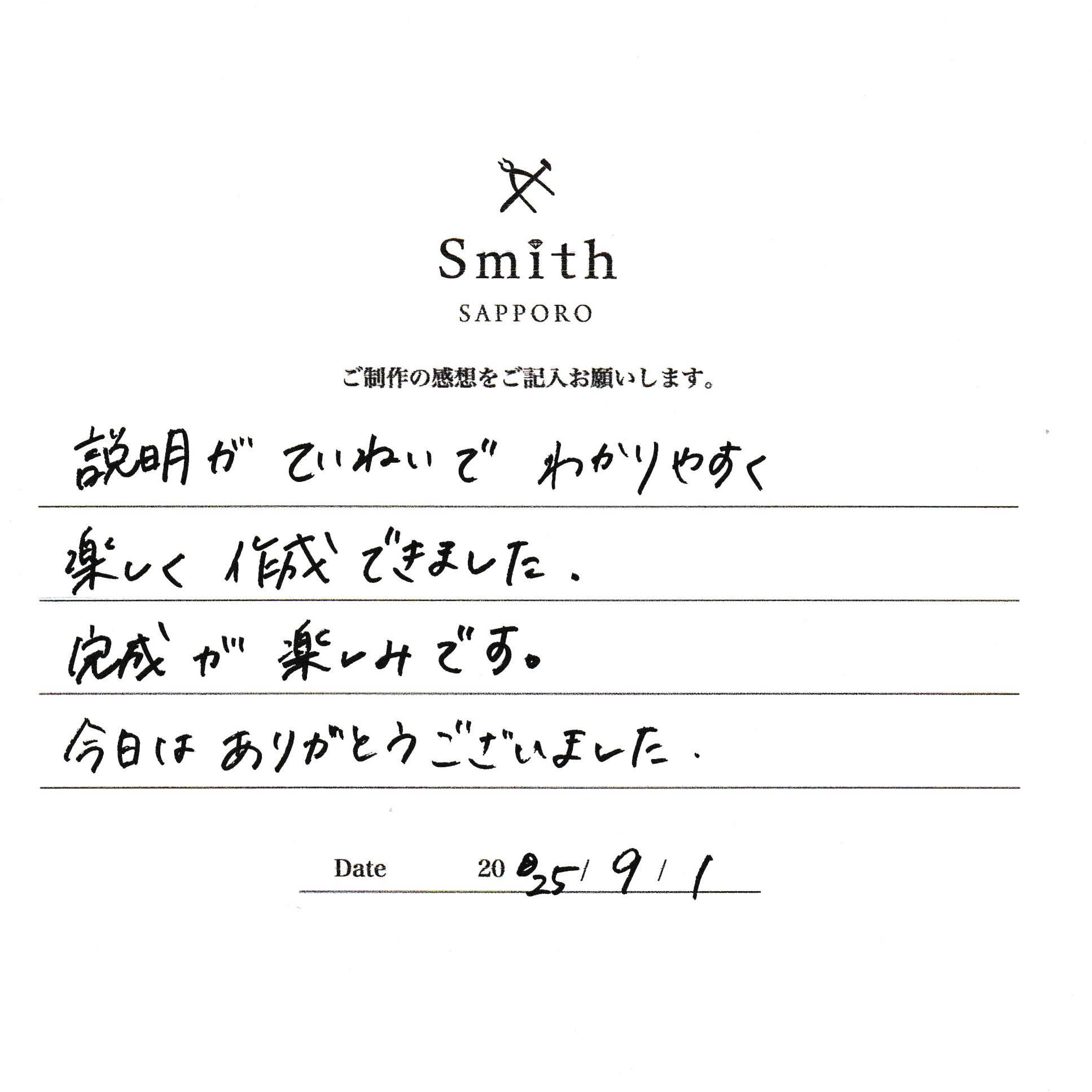 非常感謝您在札幌 Kobo Smith Keio Plaza Hotel 製作這對手工戒指。