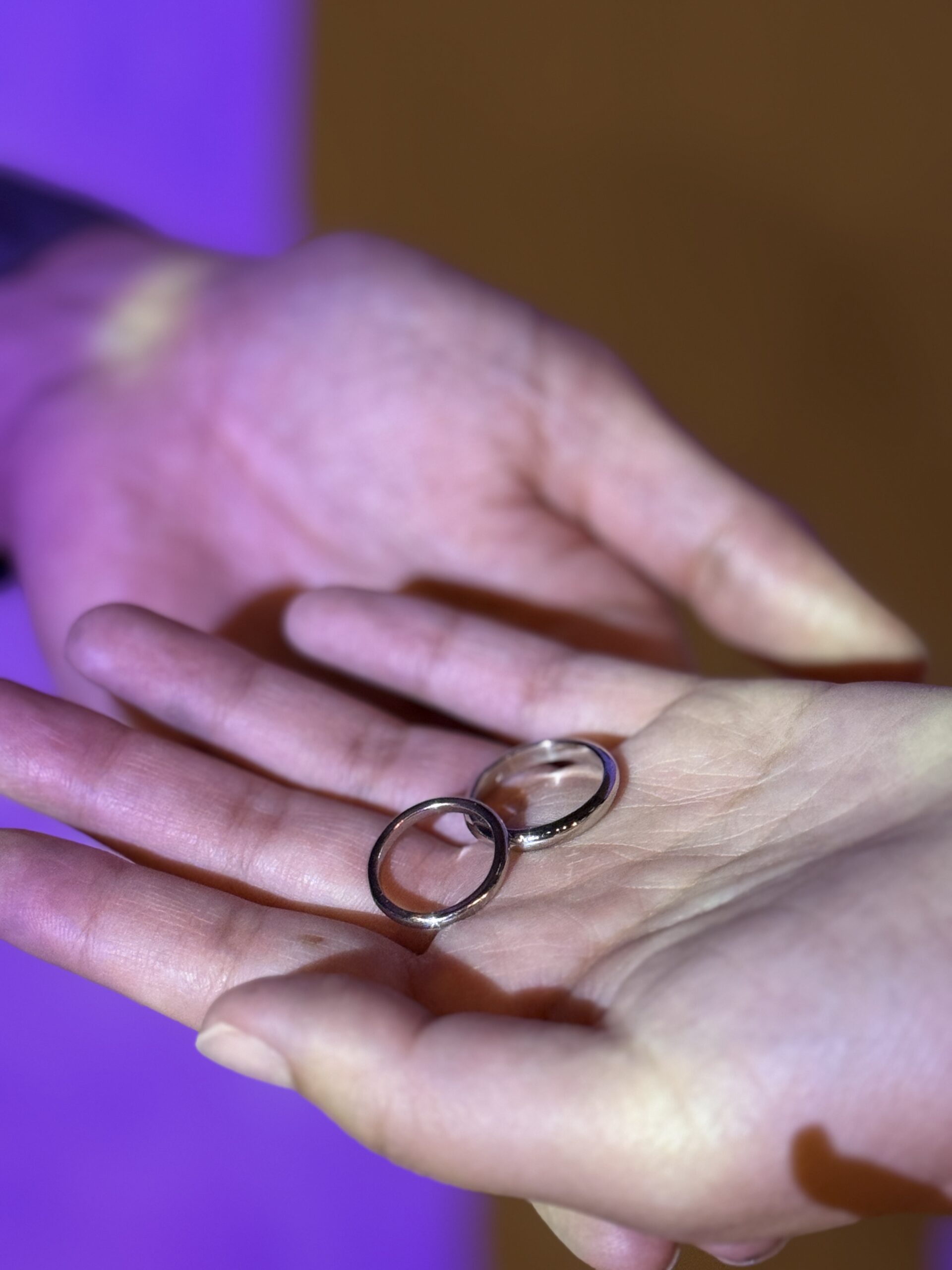 刻印にもこだわっていただき、おふたりの手書きの文字を入れた、世界にひとつだけのリングに仕上がりましたね。