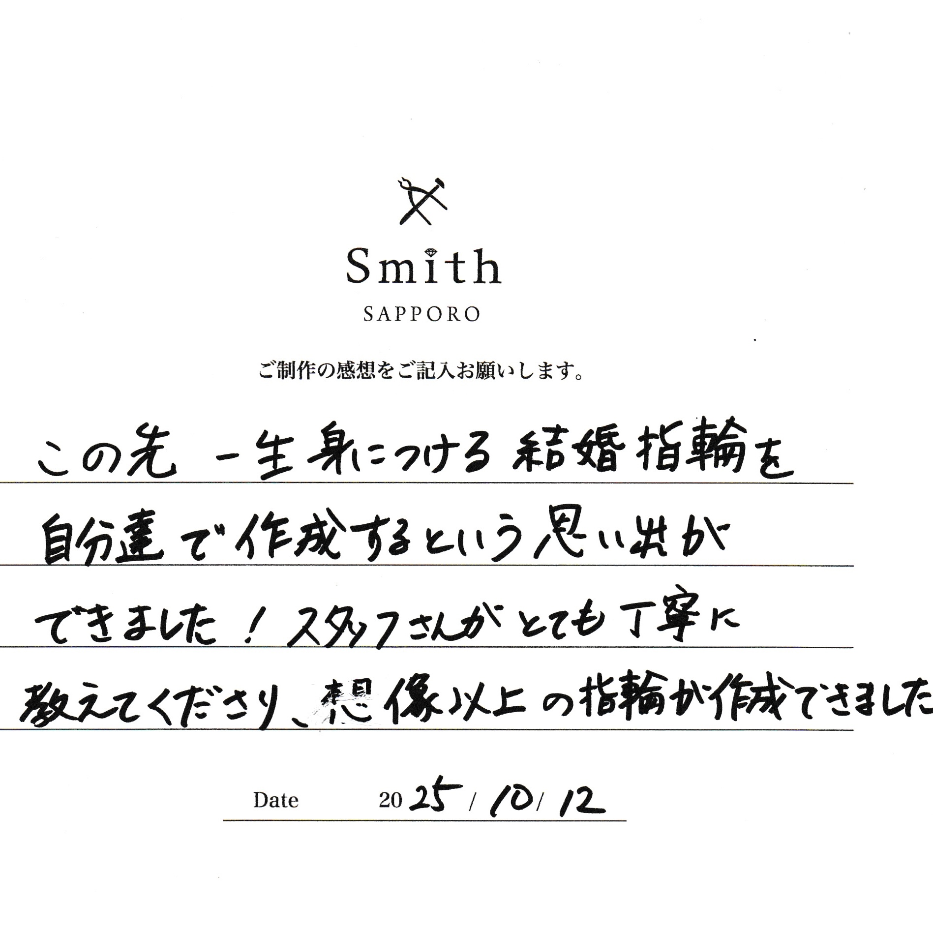 先日は手作り結婚指輪の制作にご来店いただきまして、誠にありがとうございました。