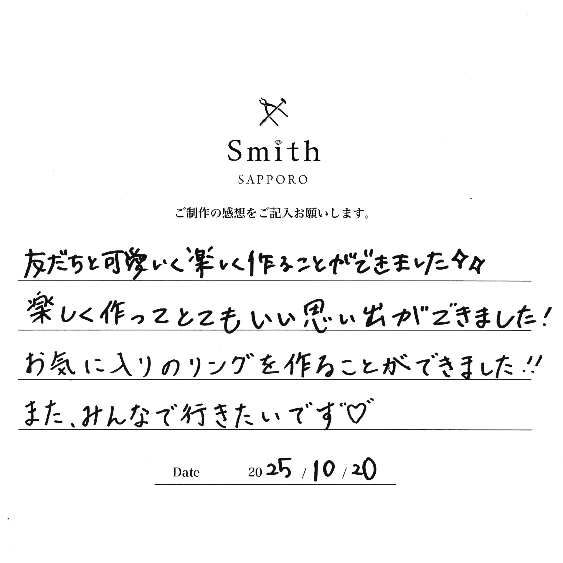 この度は、手作りシルバーリング制作に当店へご来店いただき、誠にありがとうございました。