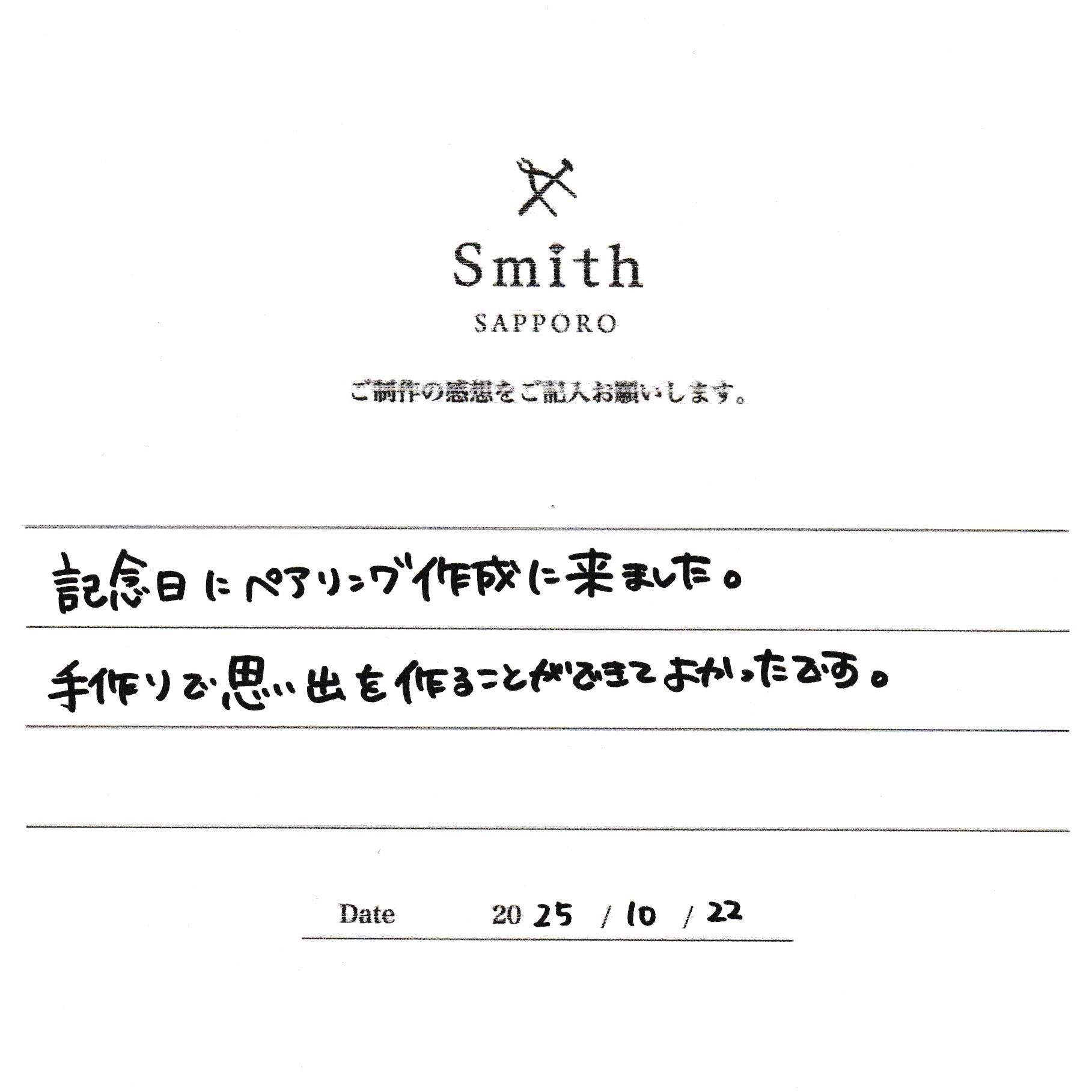 非常感謝您在札幌 Kobo Smith Keio Plaza Hotel 製作這對手工戒指。