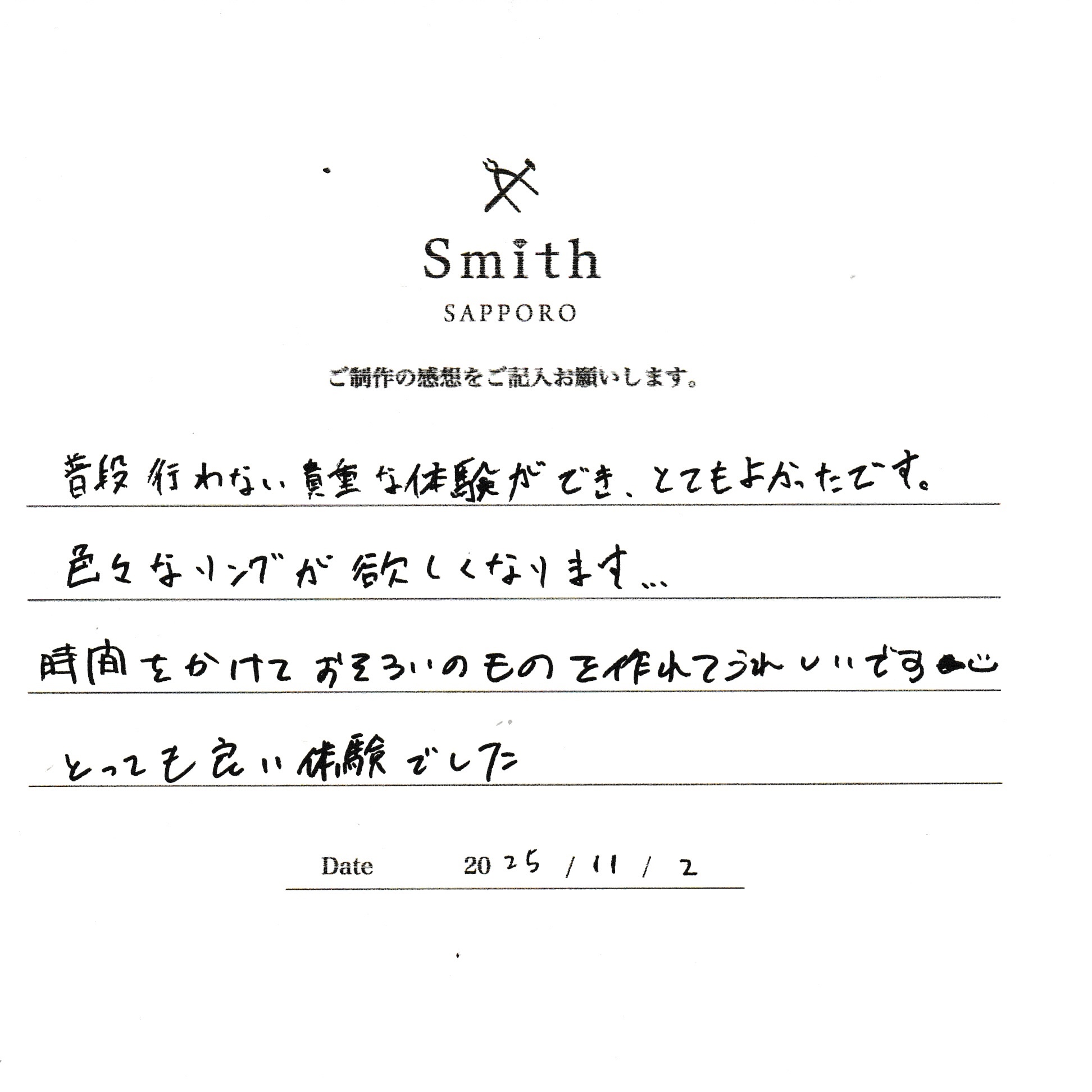 普段できない貴重な体験ができ、とてもよかったです。色々なリングが欲しくなります。