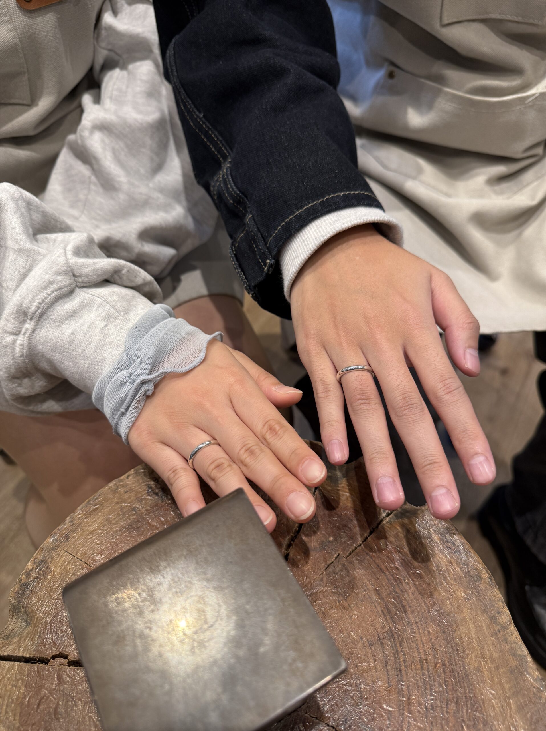基本の形は3mmの甲丸リングに、テクスチャーは鏡面とスターダストをお選びいただきました。