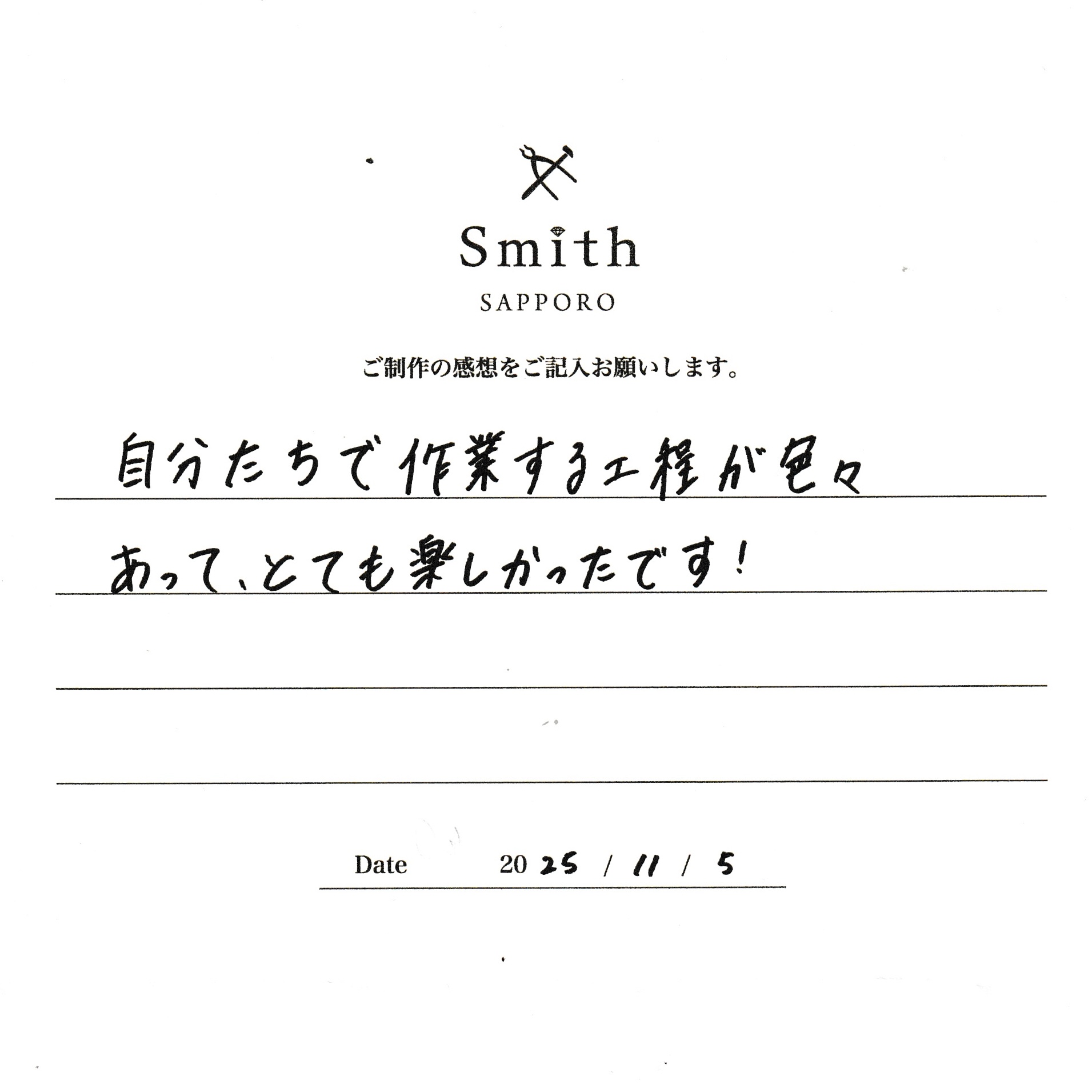 3. K様・S様【自分たちで作業する工程が色々あってとても楽しかったです】