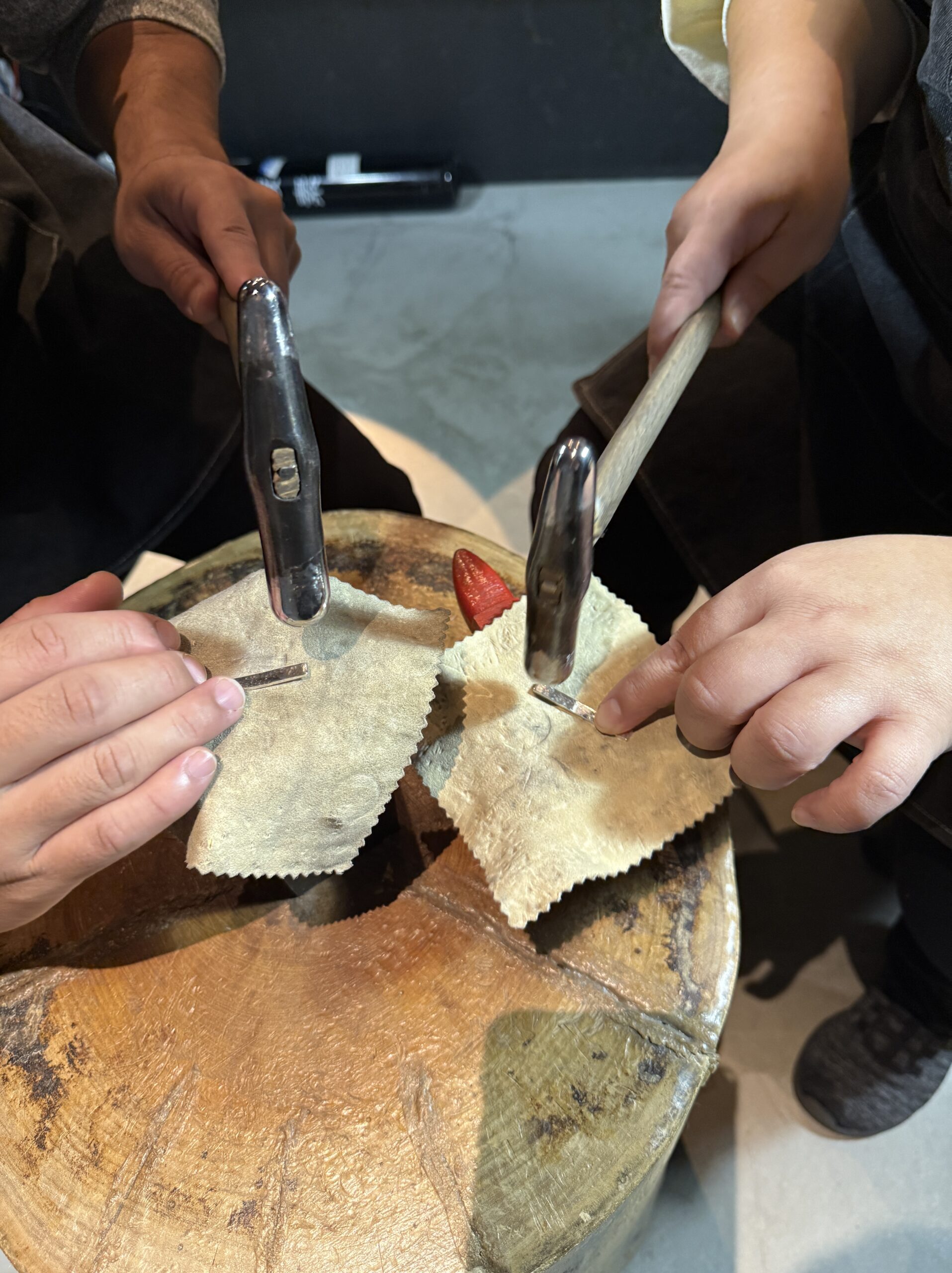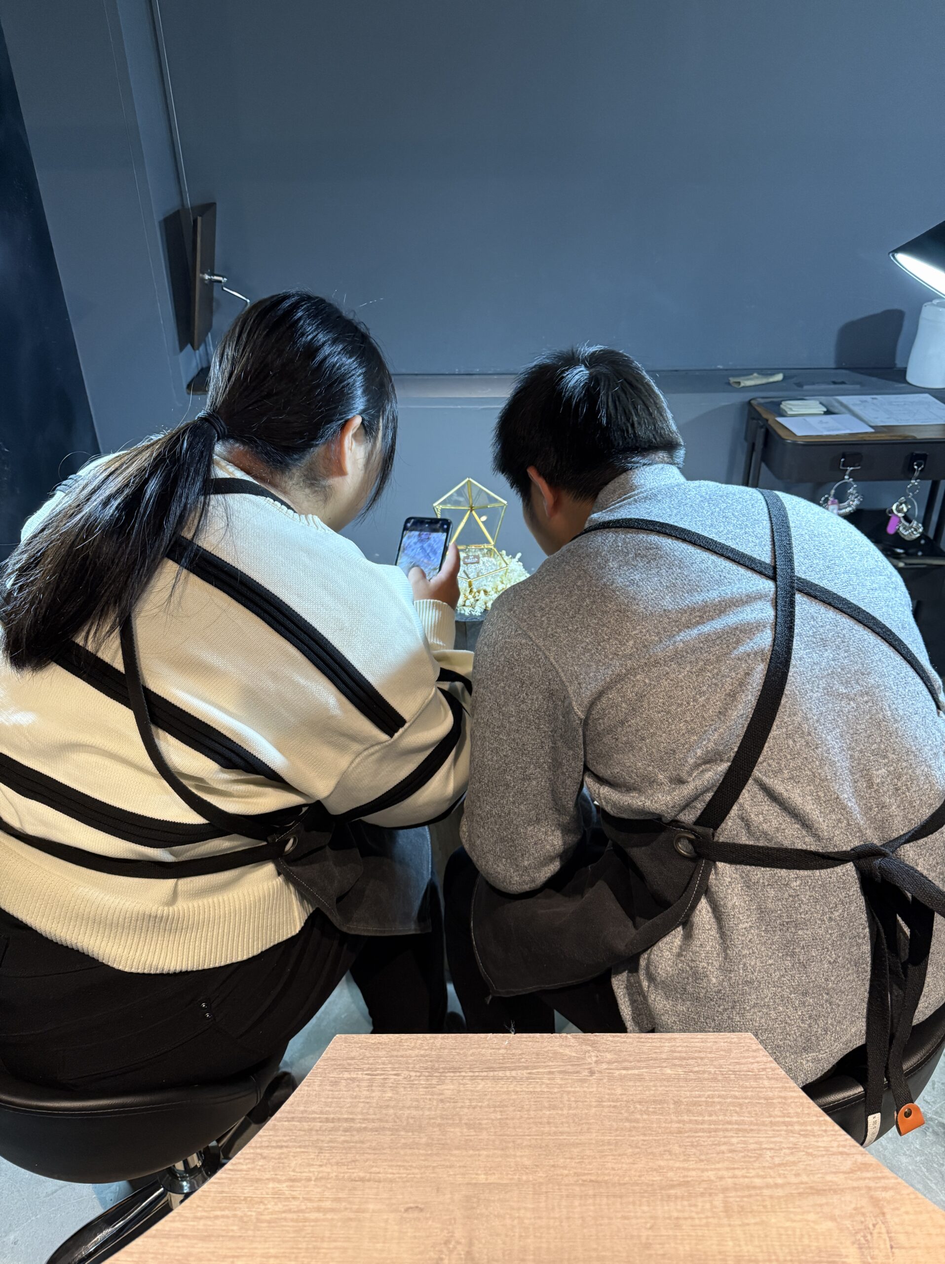 明るくチャーミングなお二人で、好みも似ておりデザインはほぼお揃い。声を掛け合いながら、時には職人のように集中して取り組む姿が印象的でした。楽しんでいただけて私もとても嬉しいです。素敵な仕上がりになり、思い出づくりのお手伝いができて光栄でした。またぜひ遊びにいらしてくださいね。