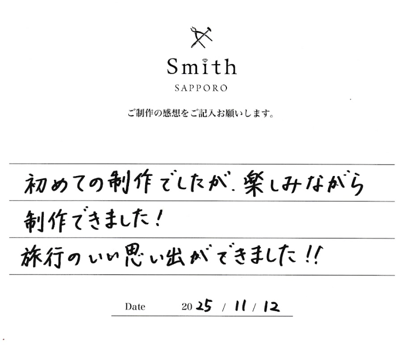 この度は、北海道旅行の最終日に手作りネックレス制作で当店へご来店いただき、誠にありがとうございました。