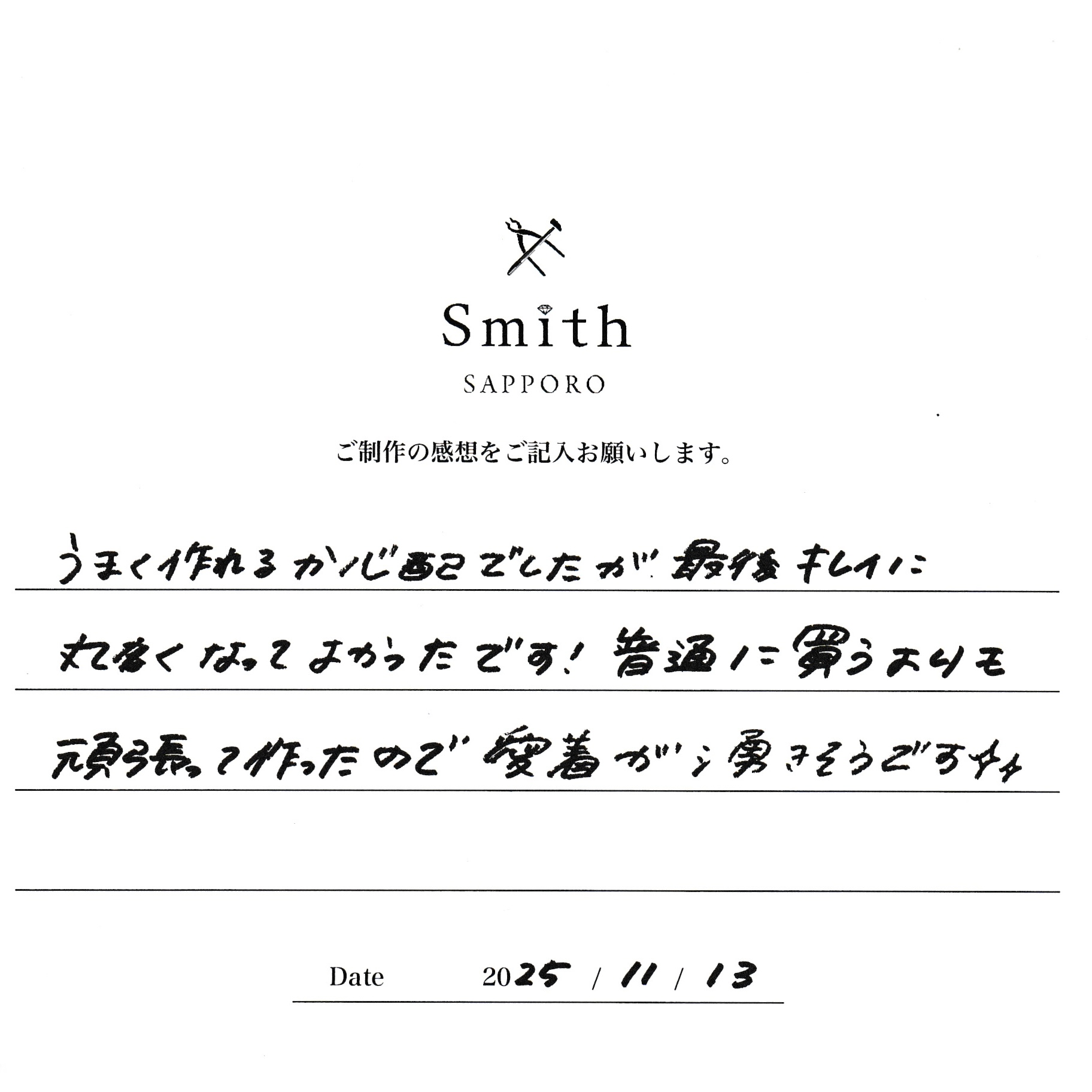 顧客在 Kobo Smith Sapporo 製作的戒指。