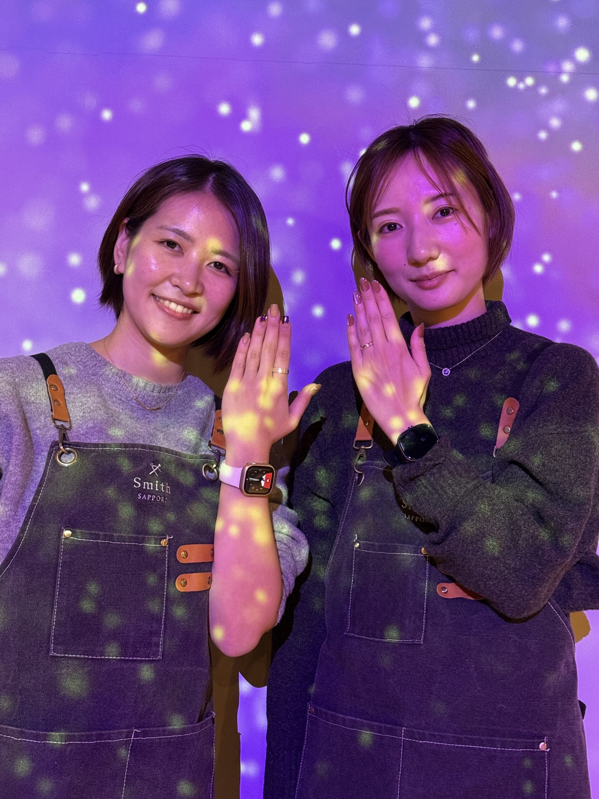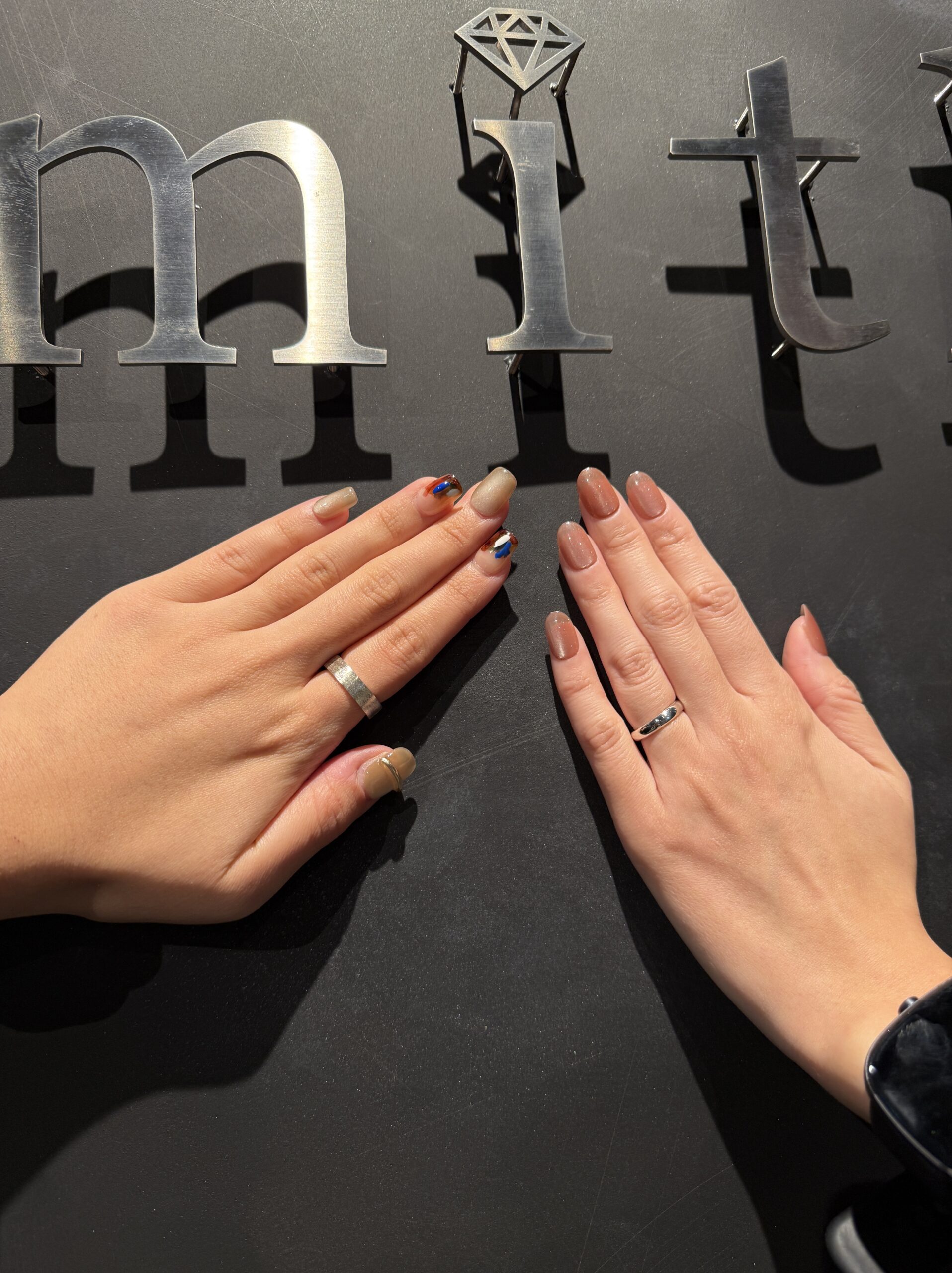 幅太めのリングをお選びいただき、9月の誕生石をセッティングした、自分たちだけのオリジナルリングが素敵に仕上がりましたね。