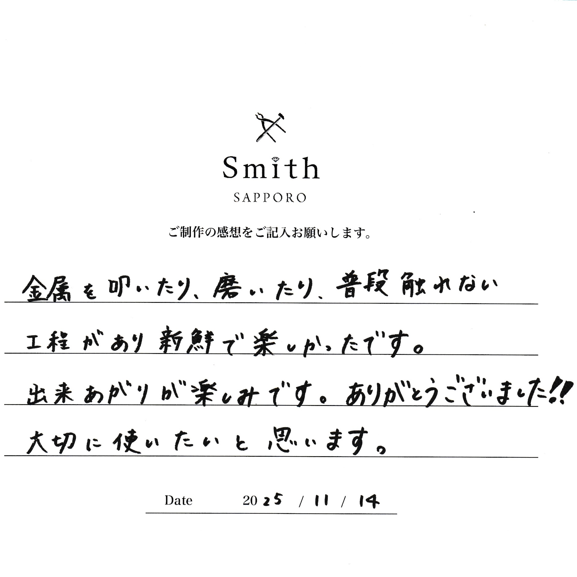 K様・T様【金属を叩いたり、磨いたり、普段触れない工程があり新鮮で楽しかったです】