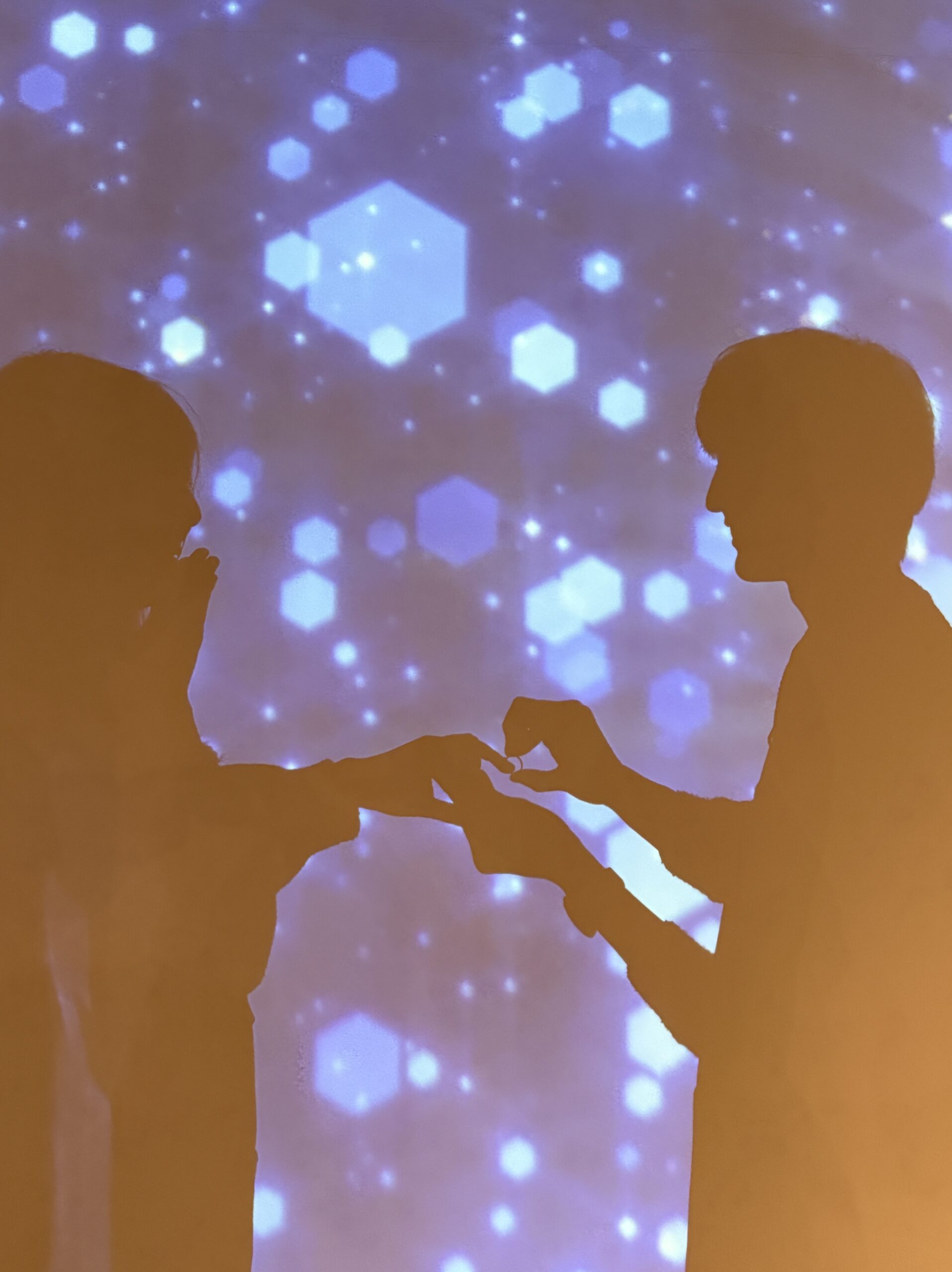 完成した結婚指輪には、お二人のイニシャルが合わせ刻印で入り、世界にひとつだけの特別なデザインとなります。