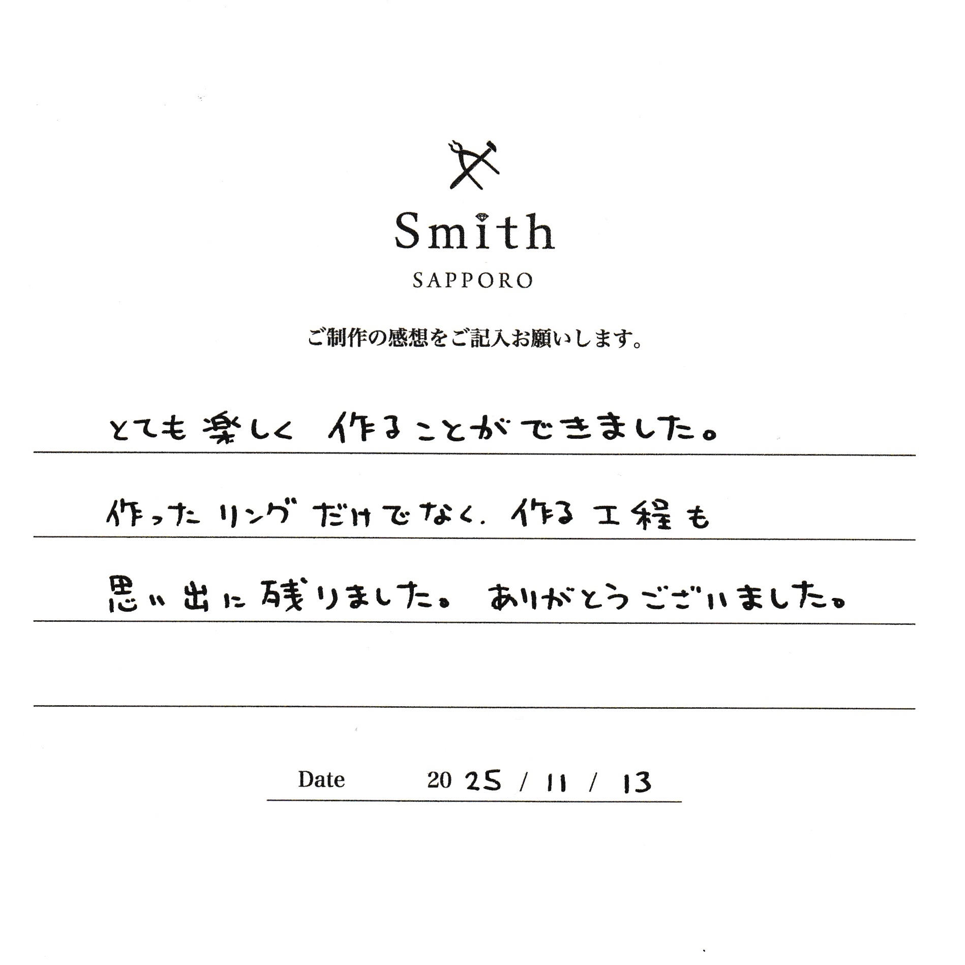 作ったリングだけでなく、作る工程も思い出に残りました。