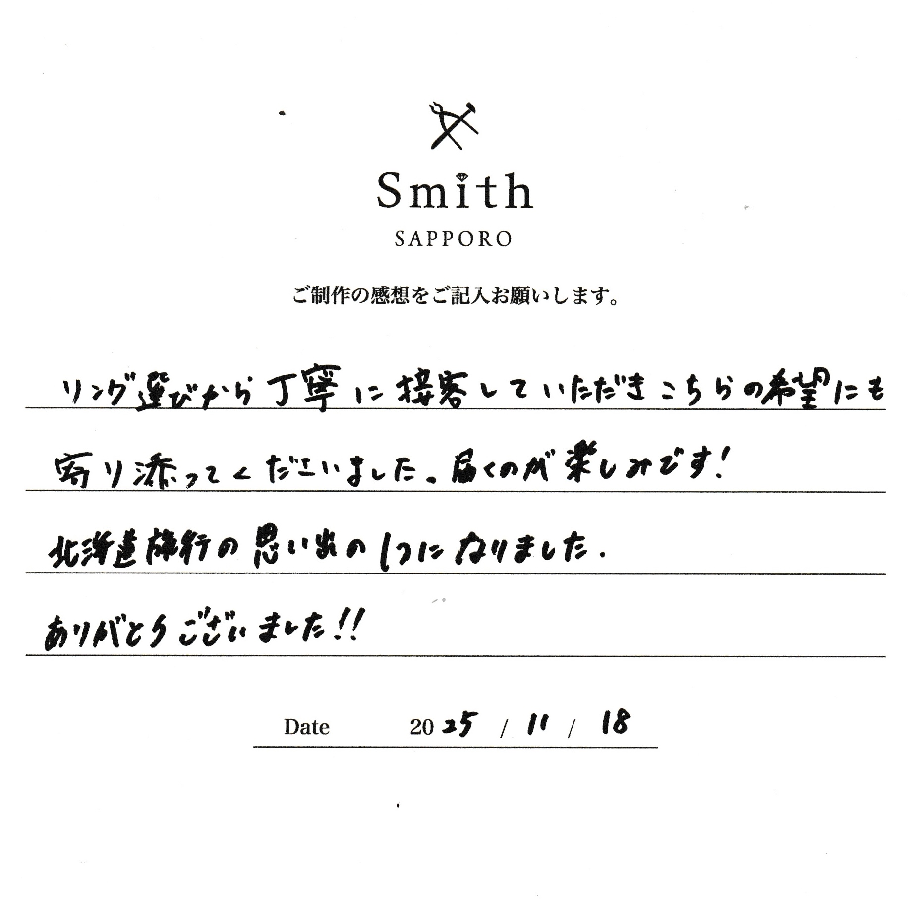 顧客在 Kobo Smith Sapporo 製作的戒指。