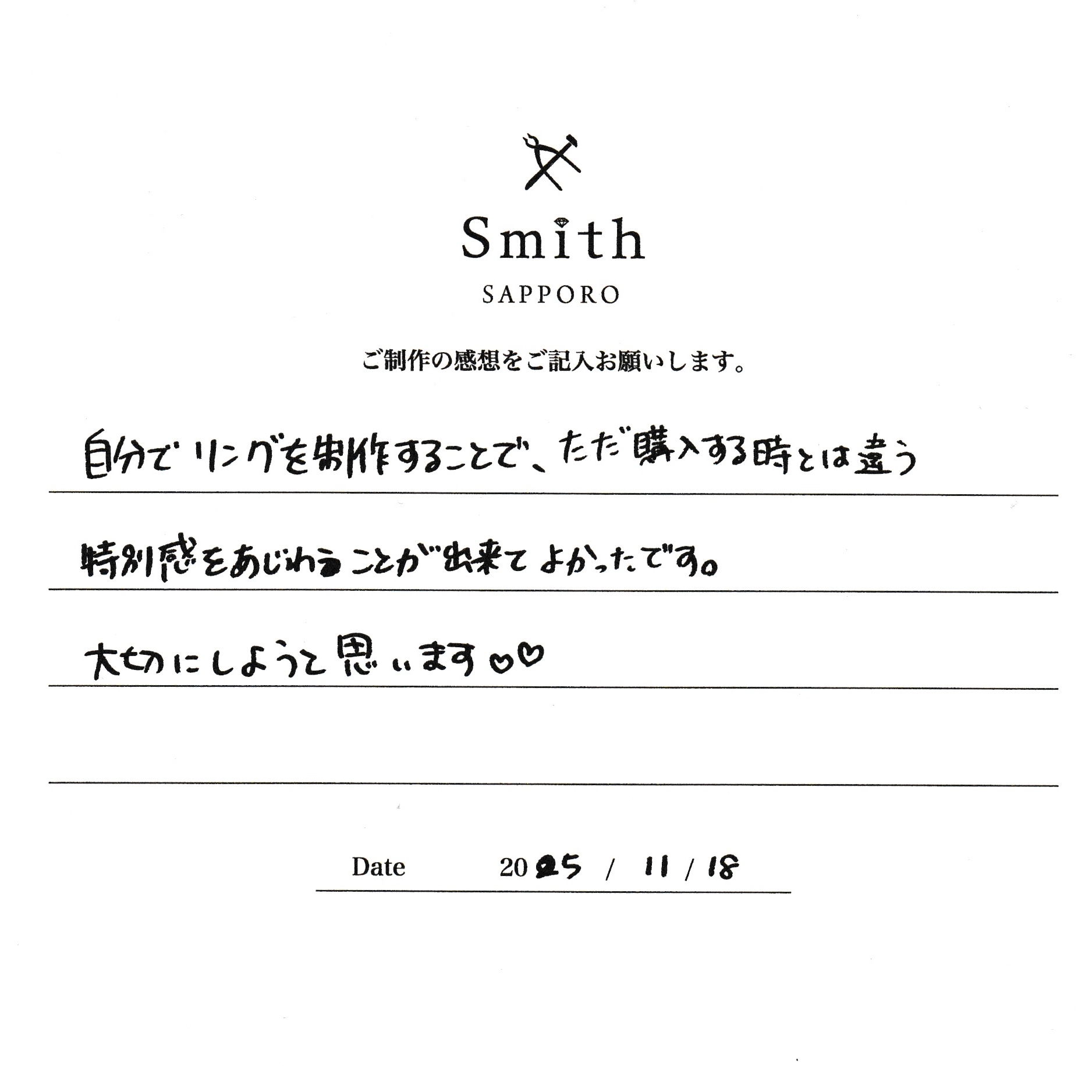 自分でリングを制作することで、ただ購入する時とは違う特別感を味わうことが出来てよかったです。