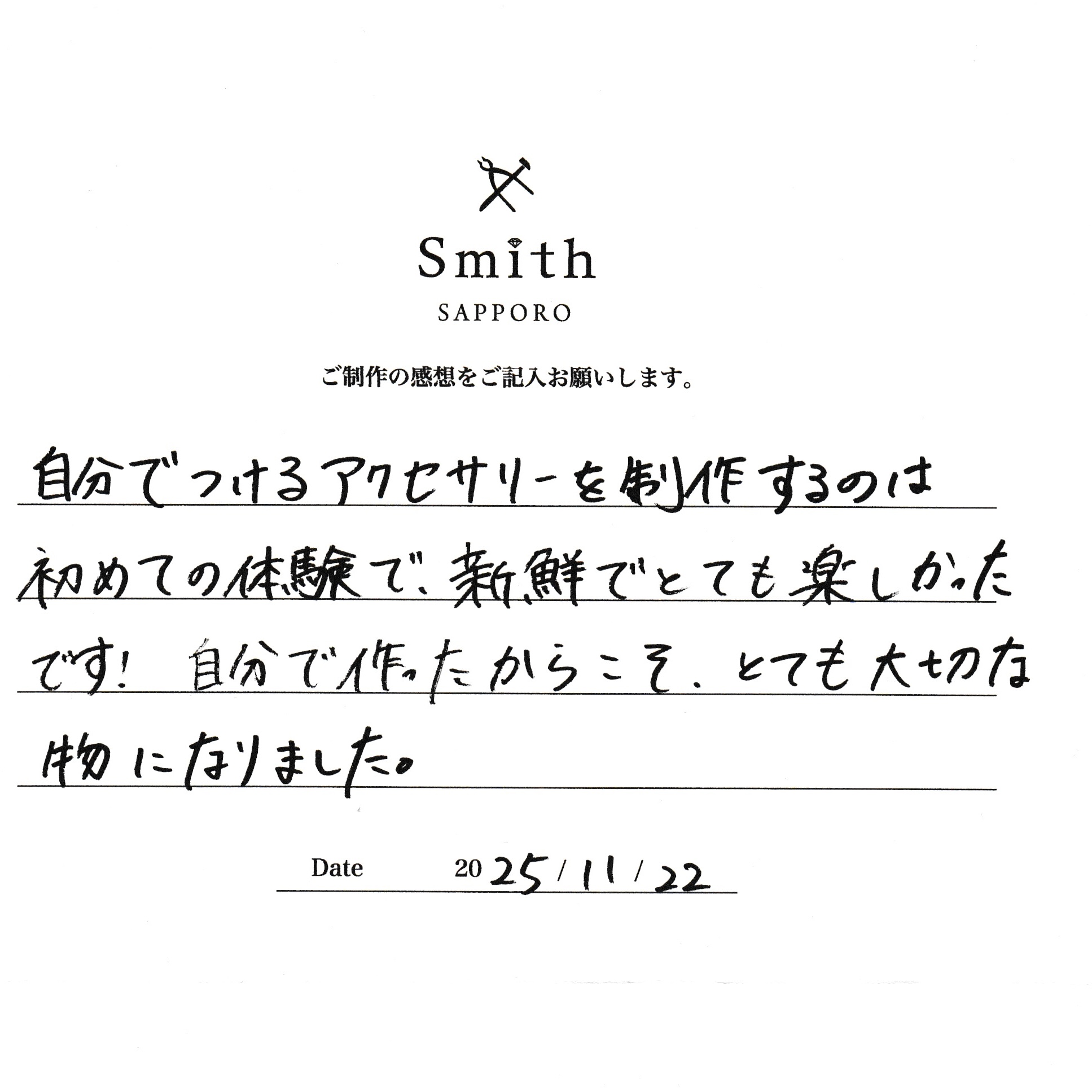 自分でつけるアクセサリーを制作するのは初めての体験で、新鮮でとても楽しかったです!