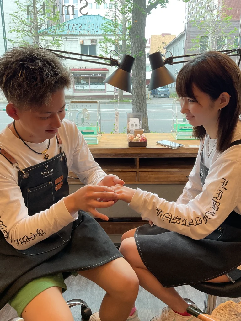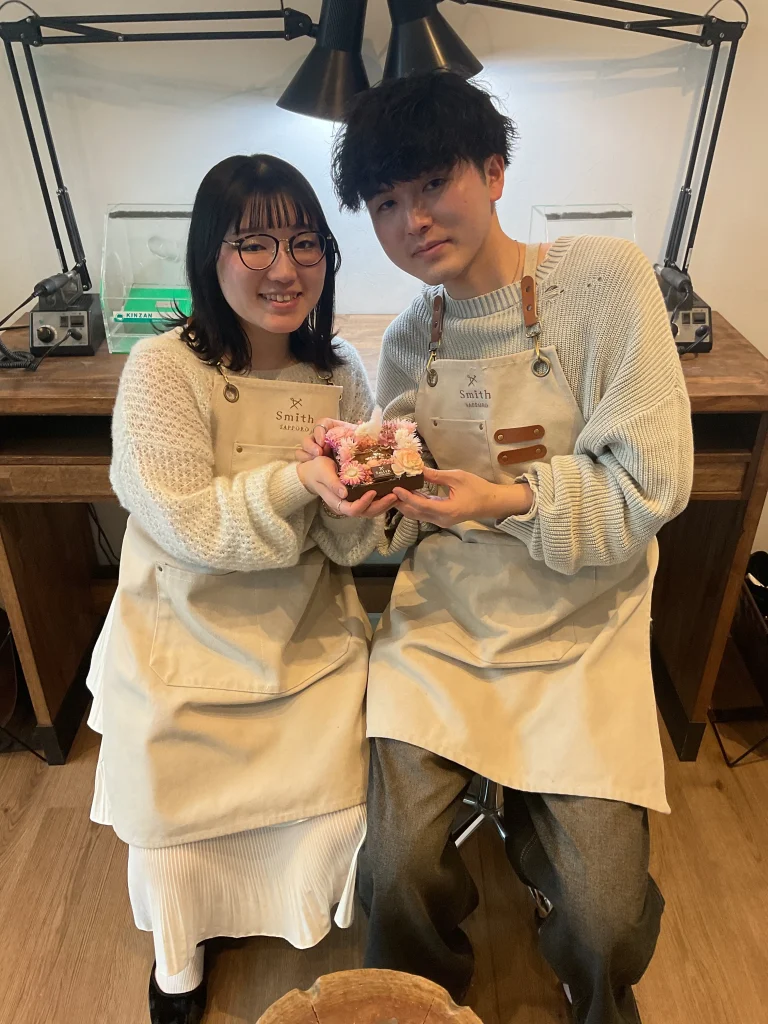 T 先生、K 太太 [我們玩得很開心,體驗了只有手工製作的產品才能做到的事情]。
